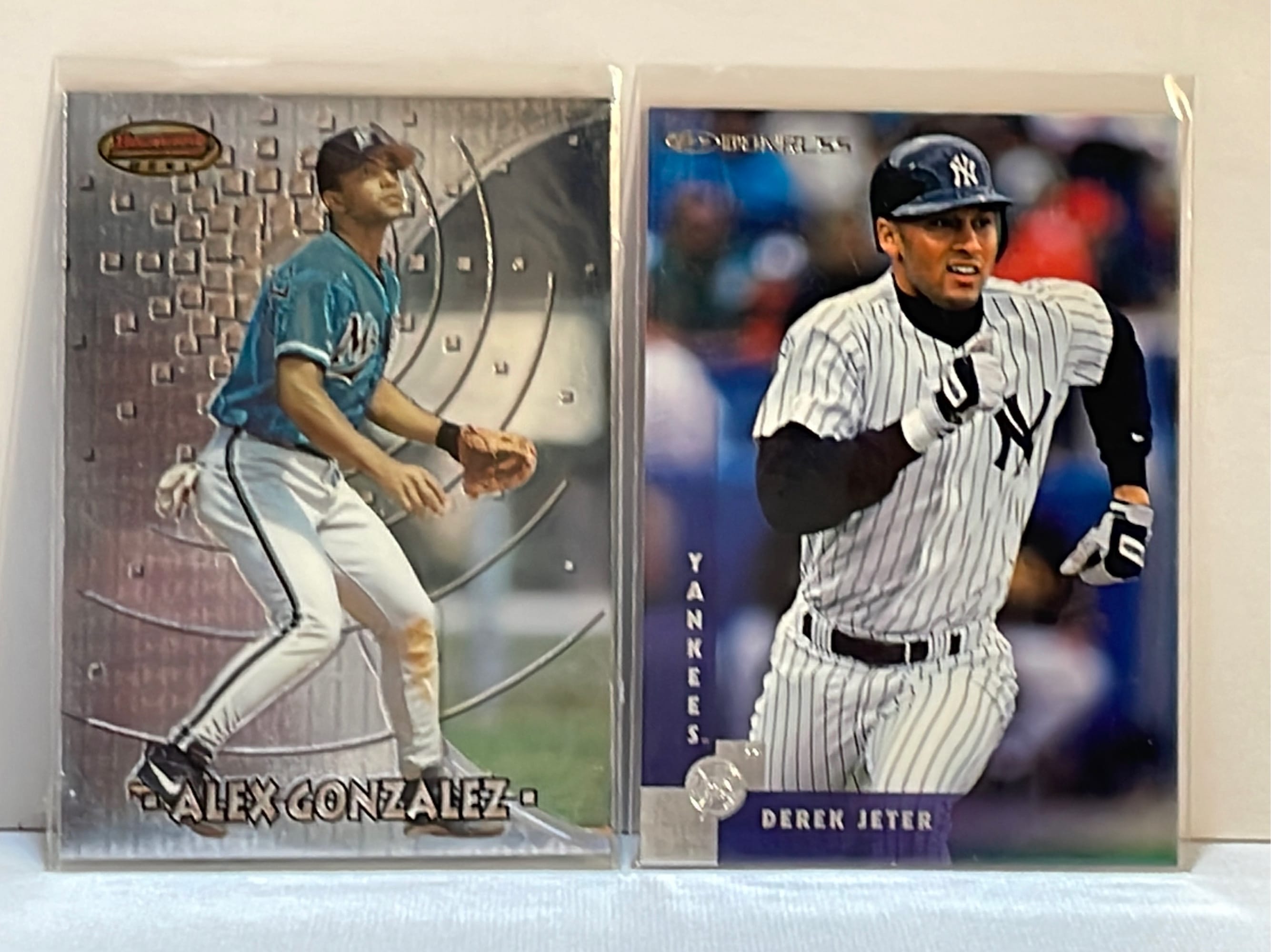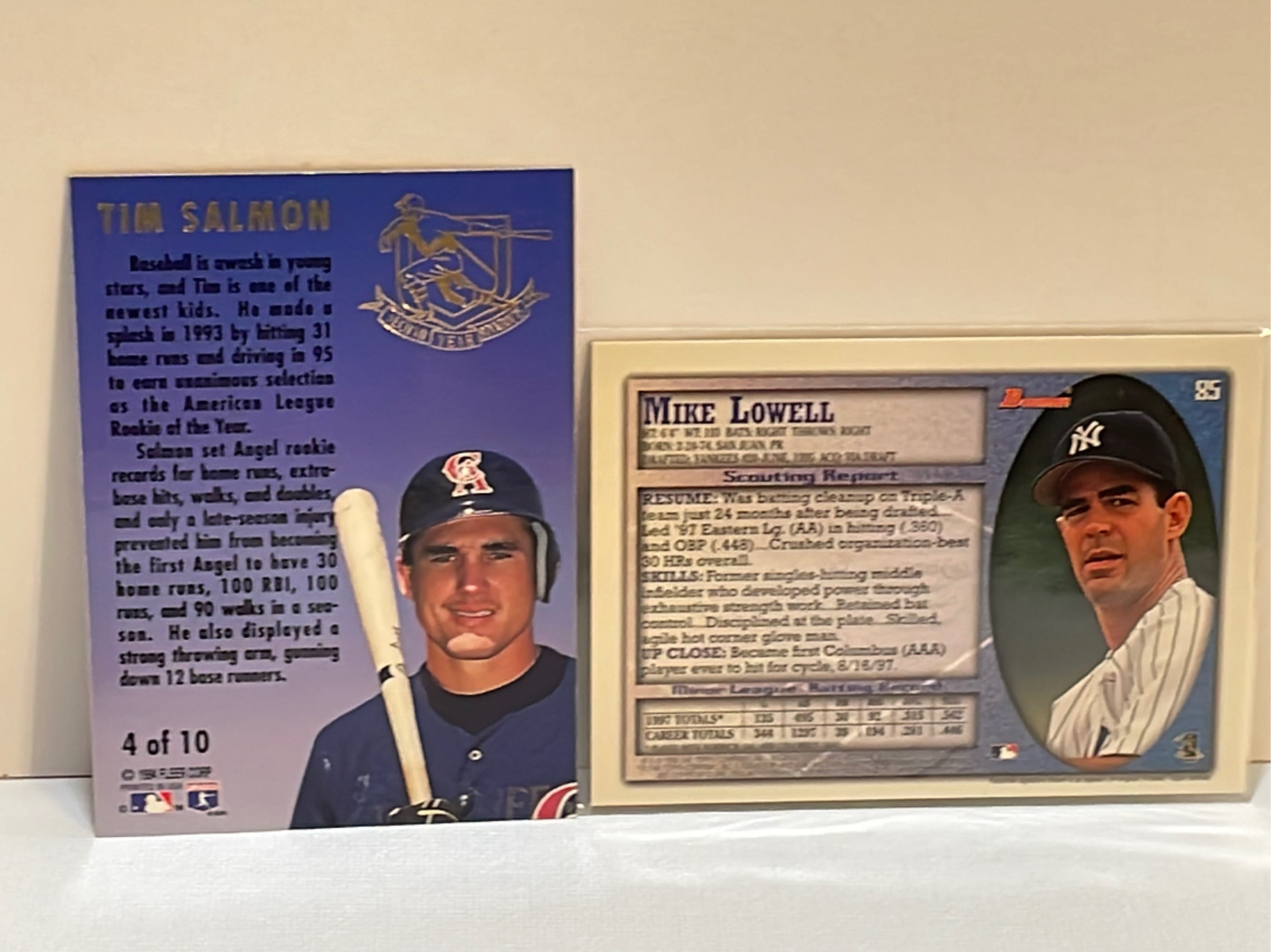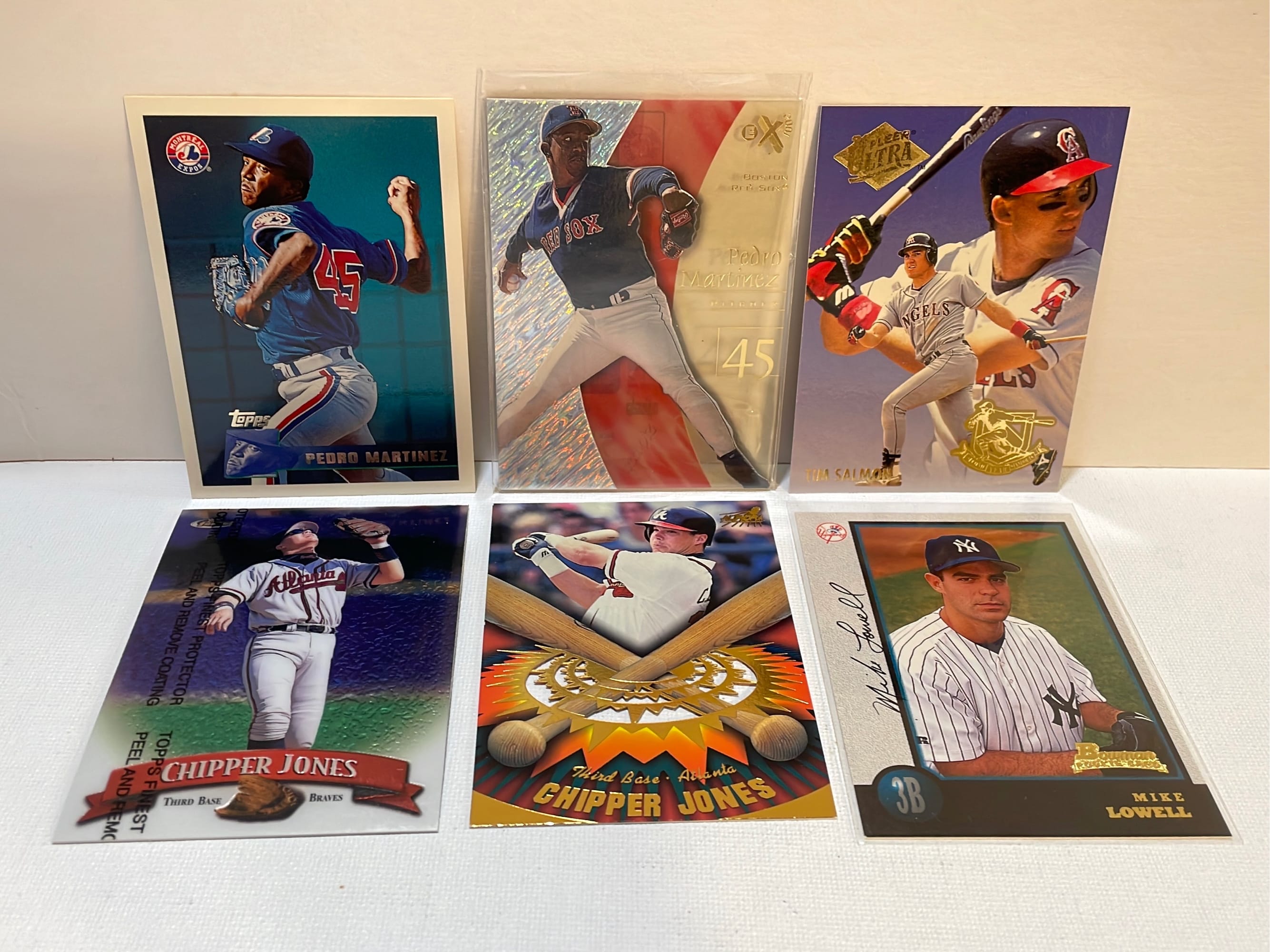 256 6 - Baseball cards 1994, ‘96, ‘98: Chipper Jones (peel & remove coating), Pedro Martinez, Mike Lowell and Tim Salmon