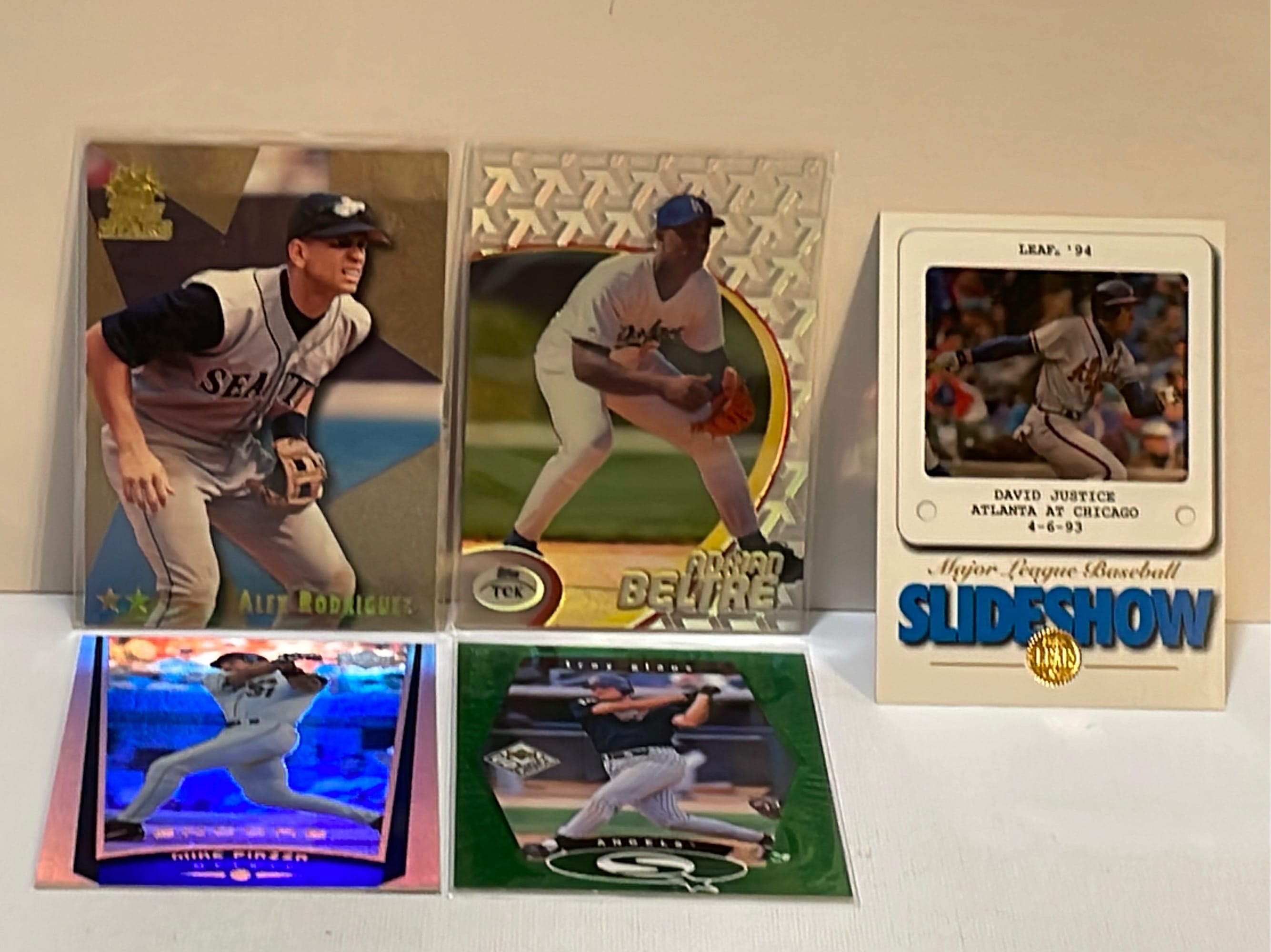 259 5 - 1990’s Baseball cards: David Justice (1994 Leaf Slideshow), Alex Rodriguez, Adrian Beltre, Troy Glaus, Mike Piazza
