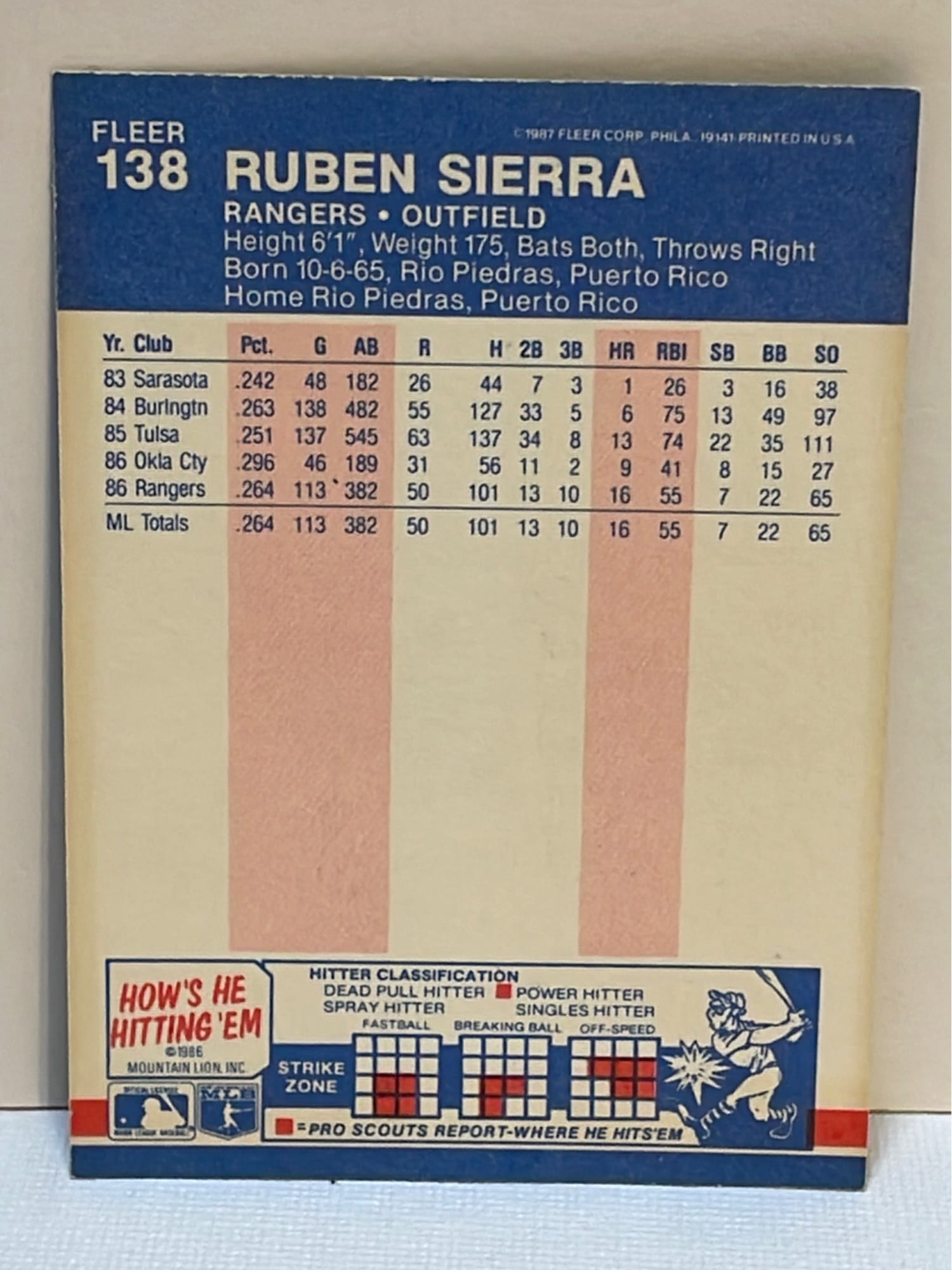 261 1986 Fleer Baseball Card #138: Ruben Sierra