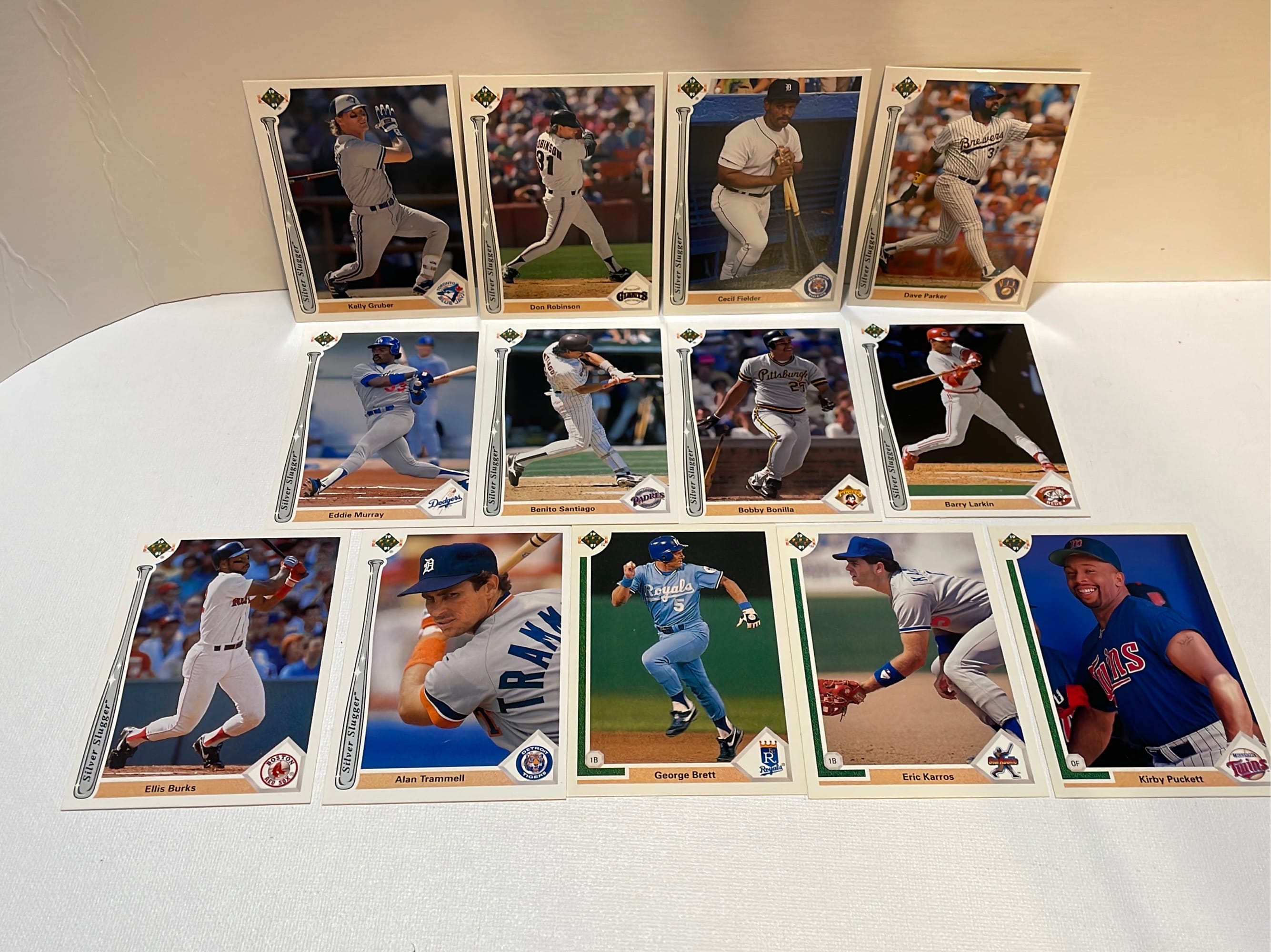 263 13 - 1991 Upper Deck Baseball cards (10 Silver Slugger) including: Puckett, Brett, Karros, Burks, Murray, Robinson, and more
