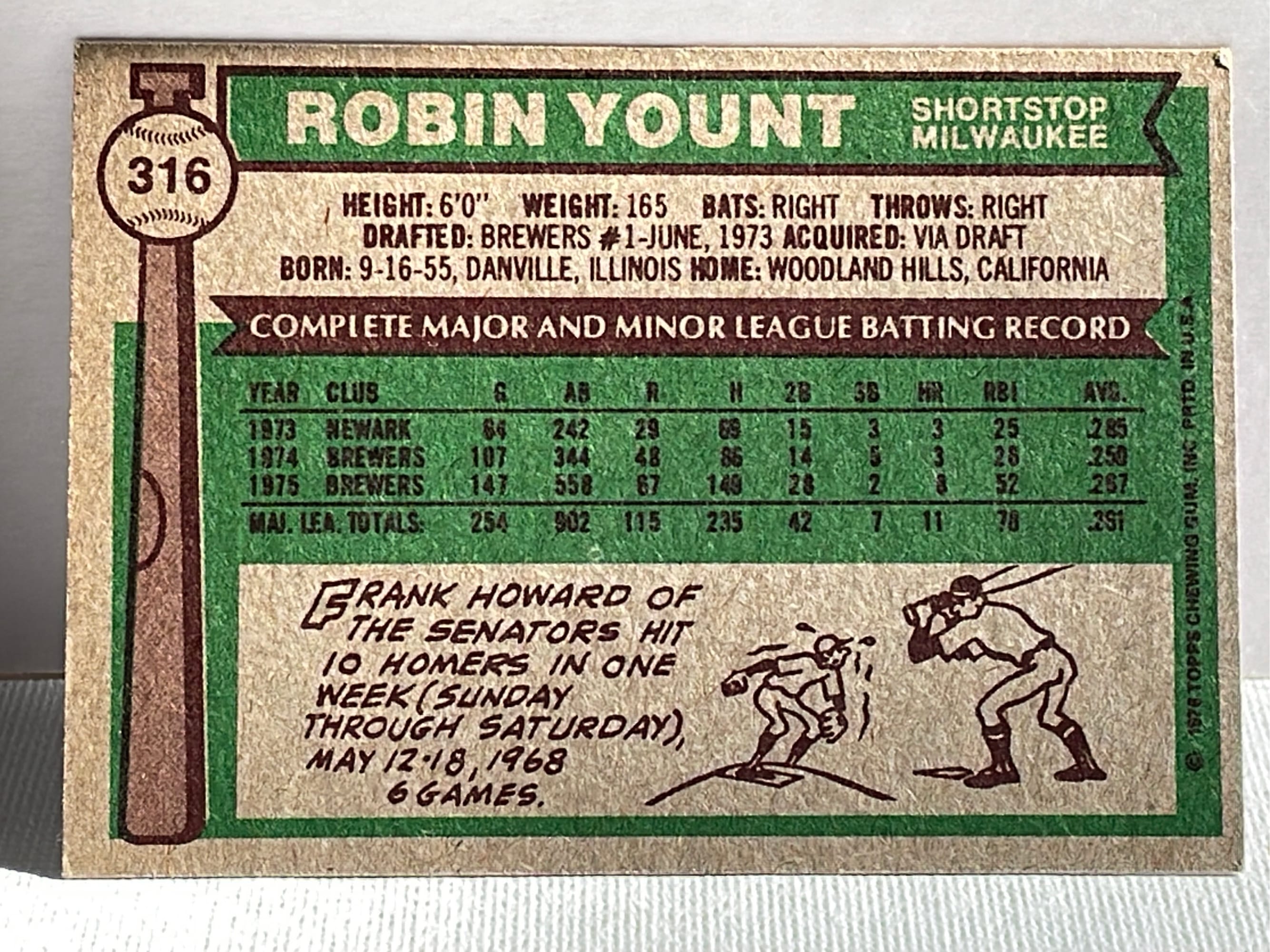 268 1975 Topps Ben Oglivie #344 and 1976 Topps Robin Yount #316