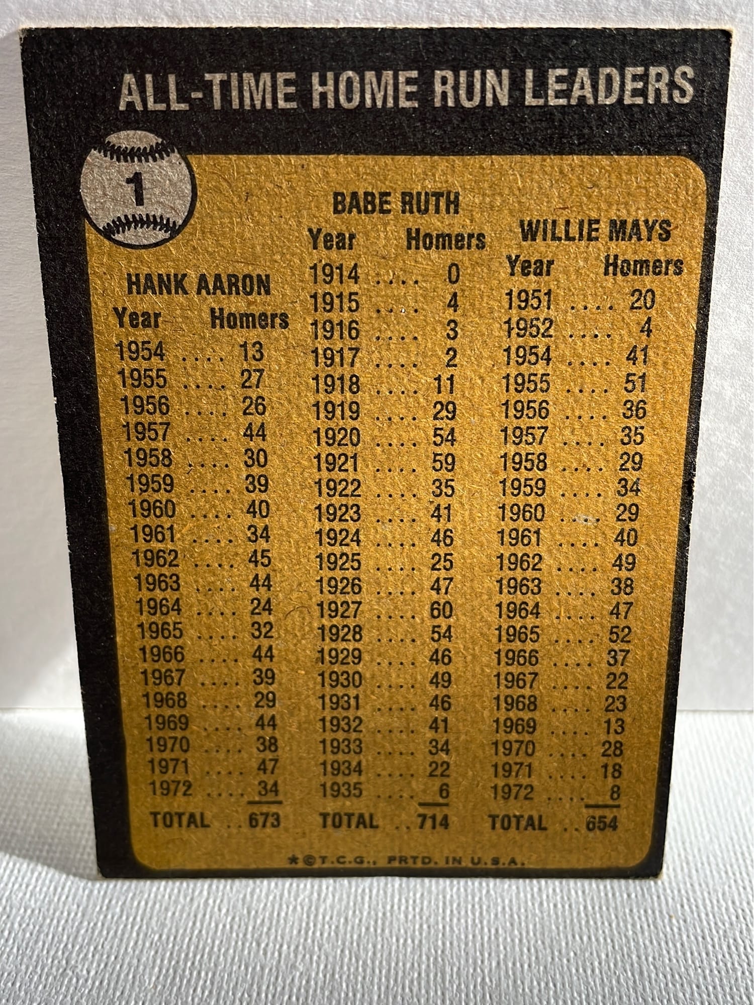 276 1973 Topps #1 All-Time Home Run Leaders: Babe Ruth, Hank Aaron, Willie Mays