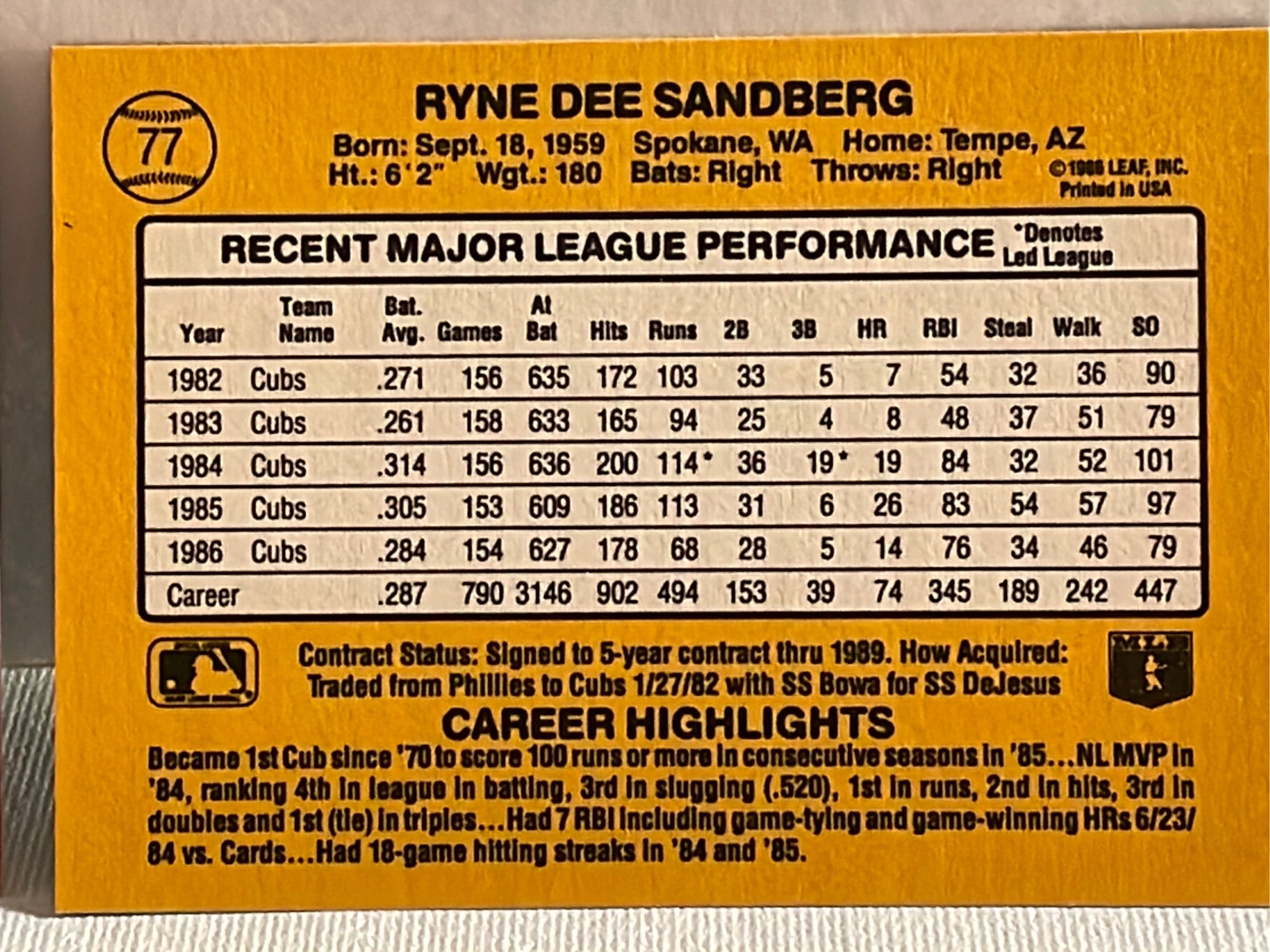 278 1987 and 1991 Ryne Sandberg Baseball cards
