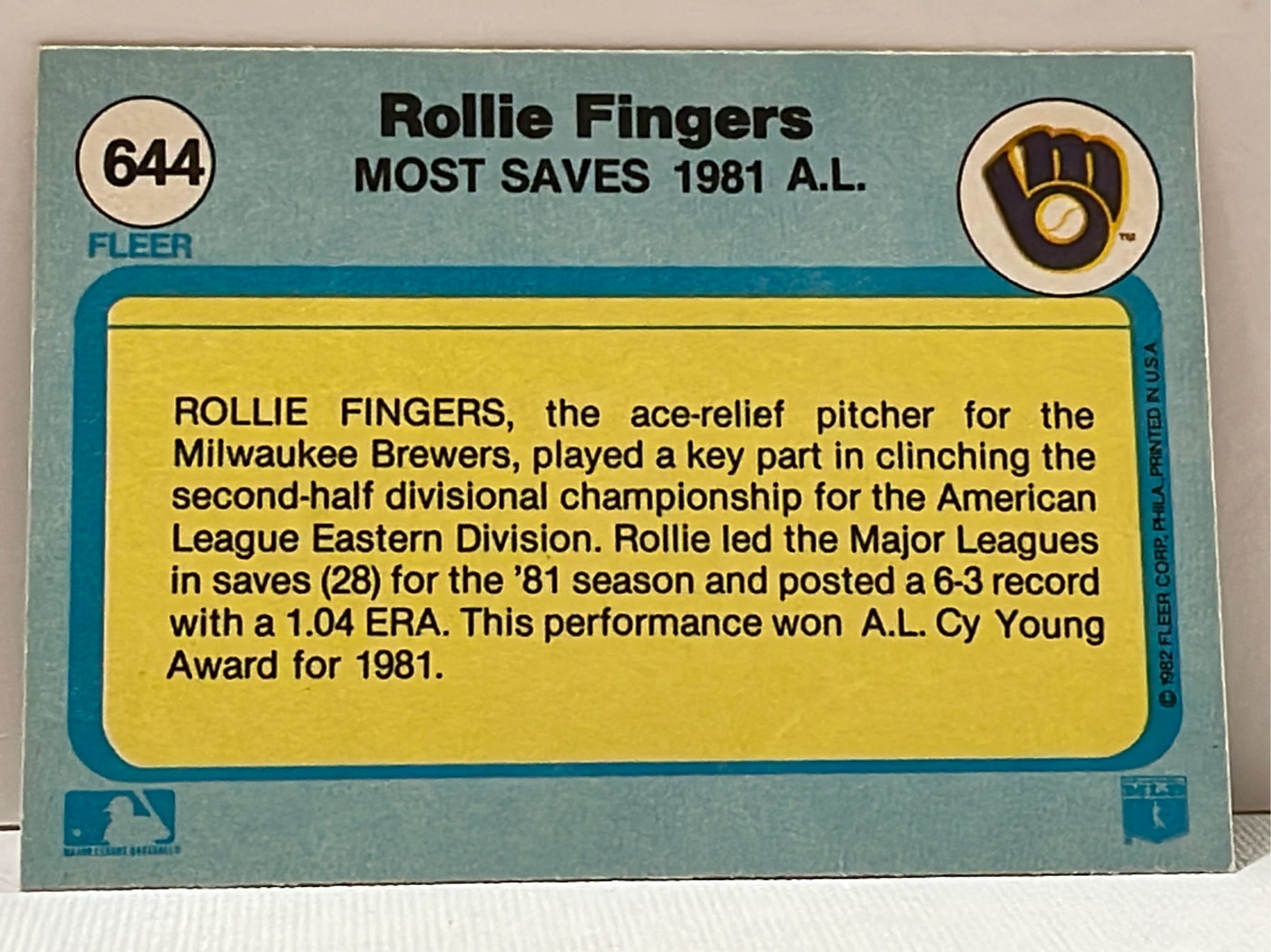 281 1982 Fleer #644 Rollie Fingers Baseball Card