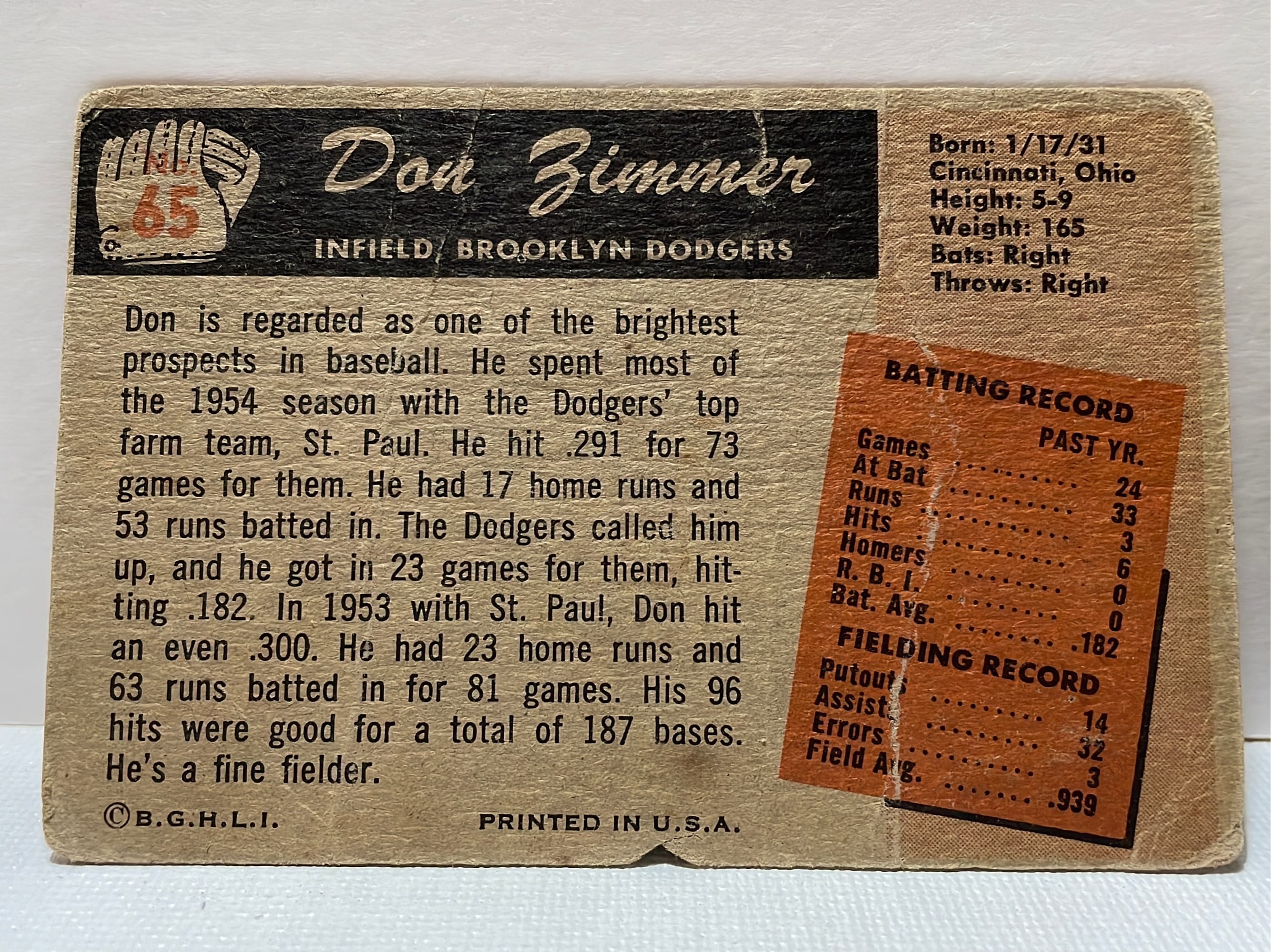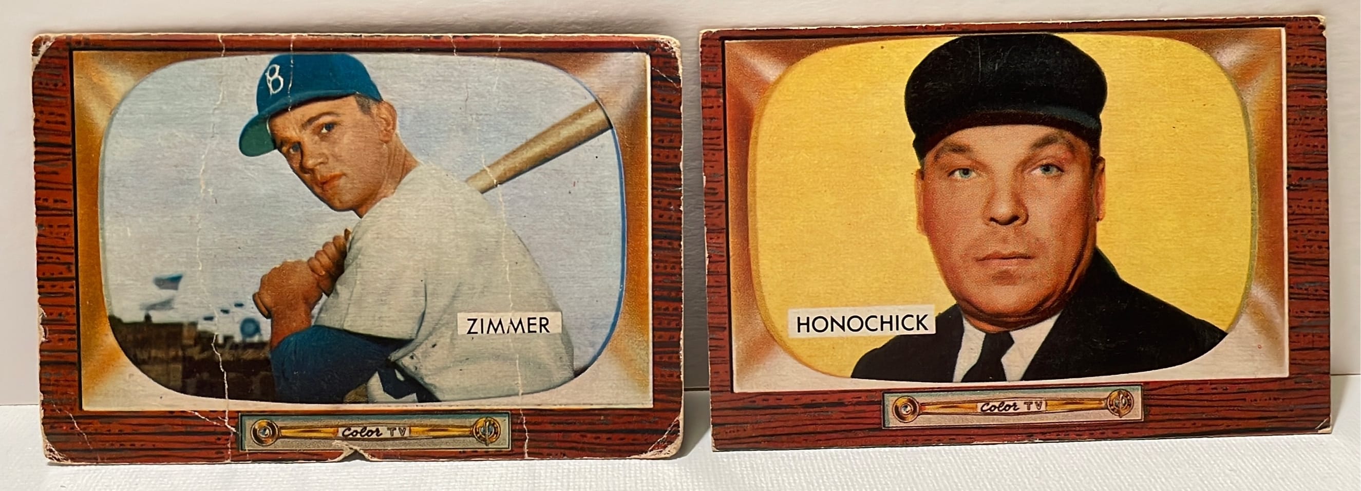 284 1955 Bowman “Color TV” Baseball Cards: Don Zimmer #65, George Honochick, Umpire #267