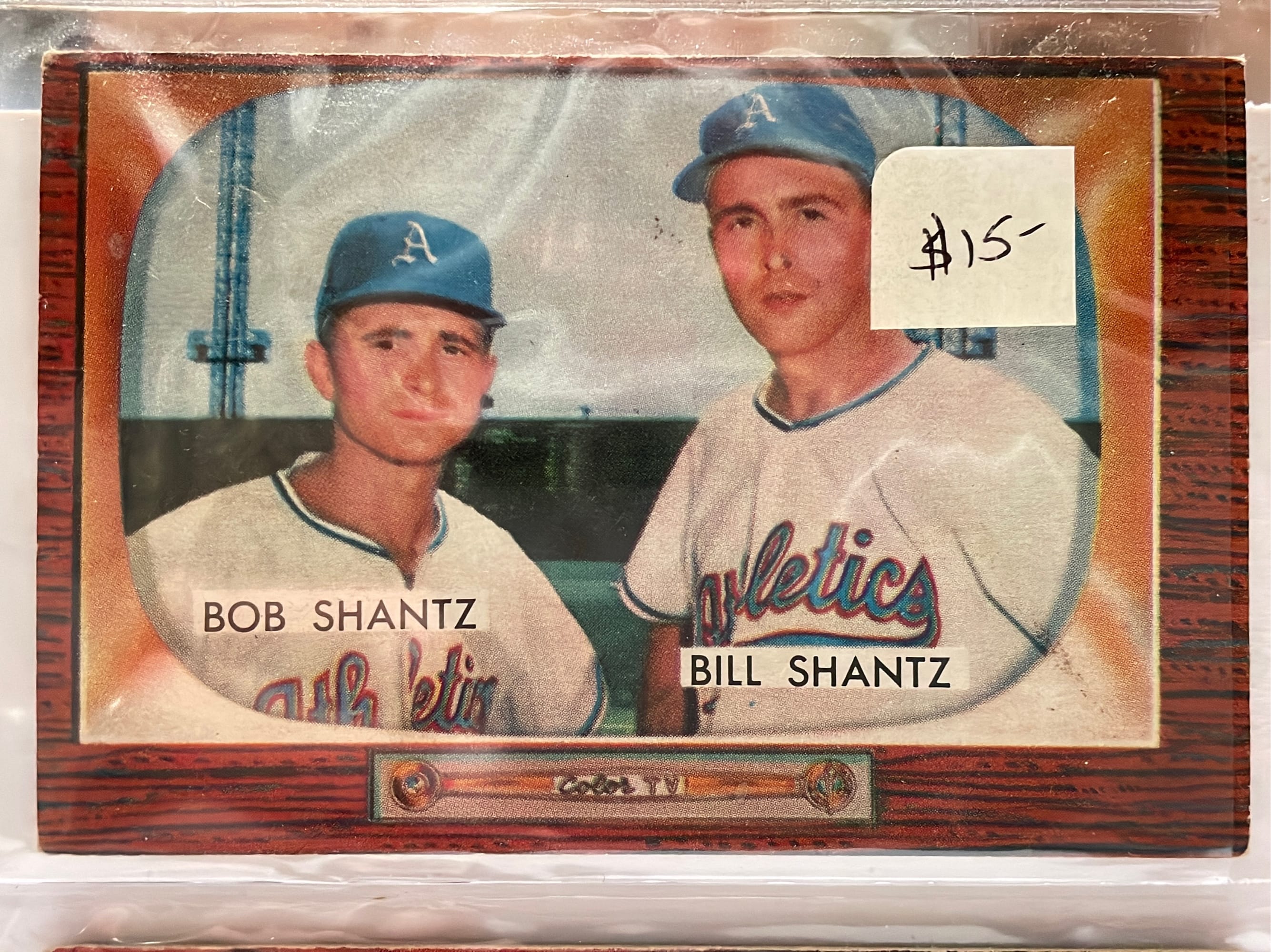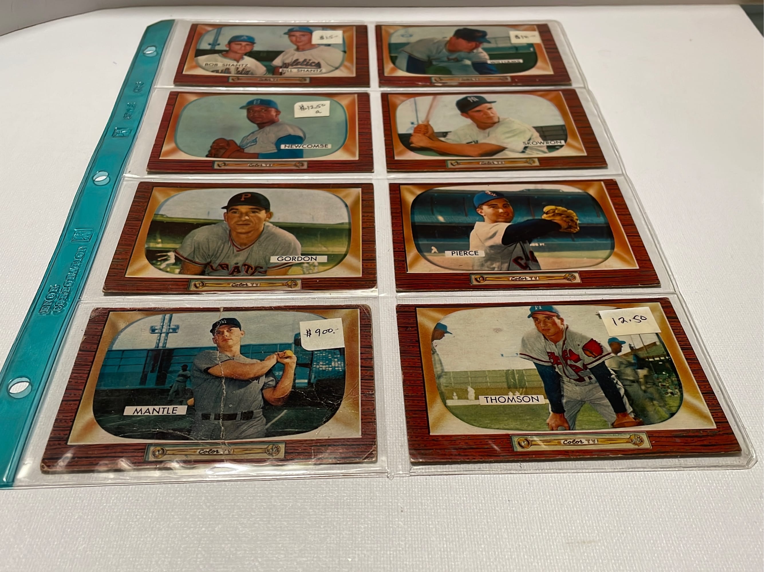 285 8 - 1955 Bowman “Color TV” Baseball Cards, Including: Mantle, Gordon, Shantz, Newcombe