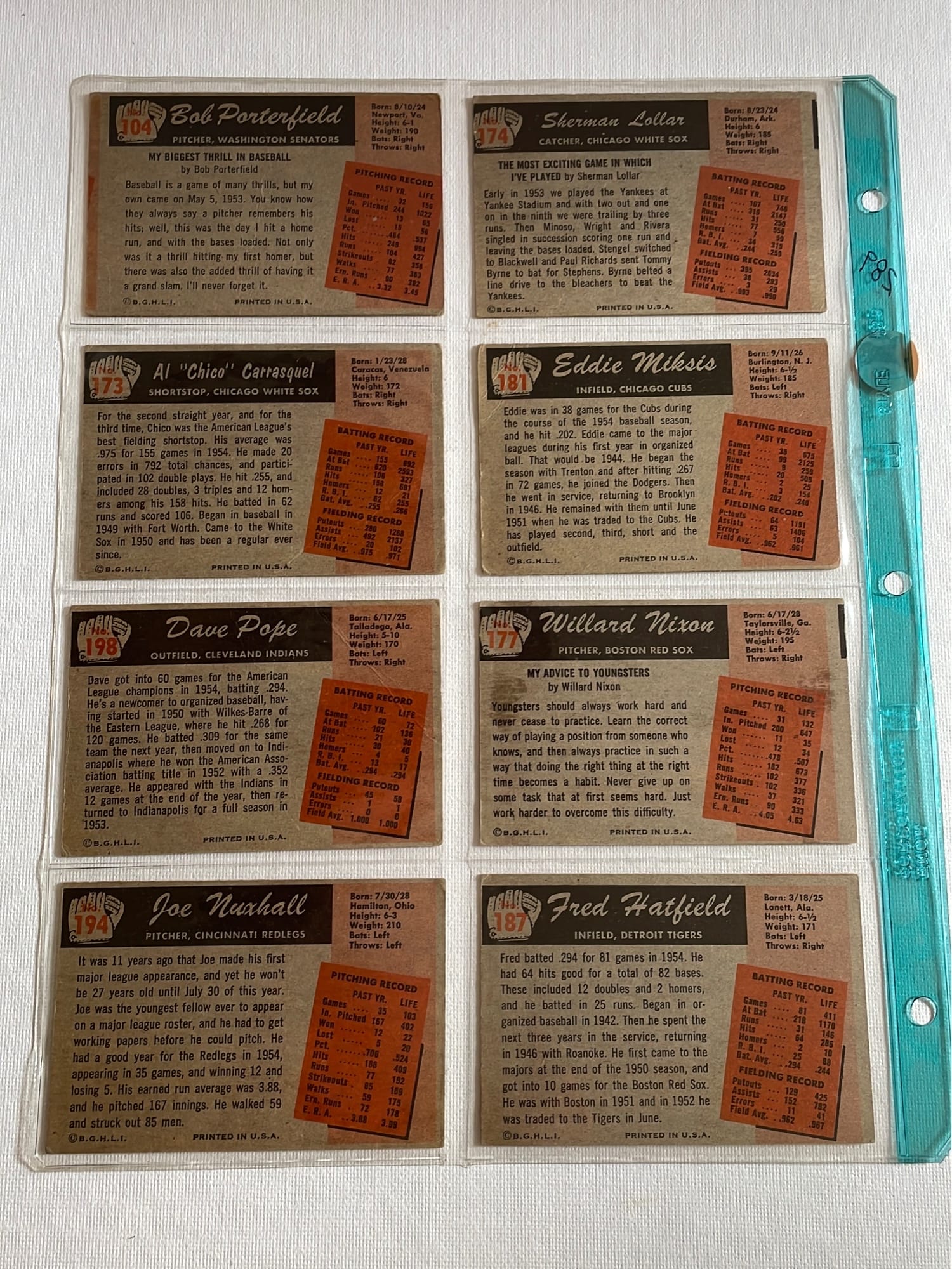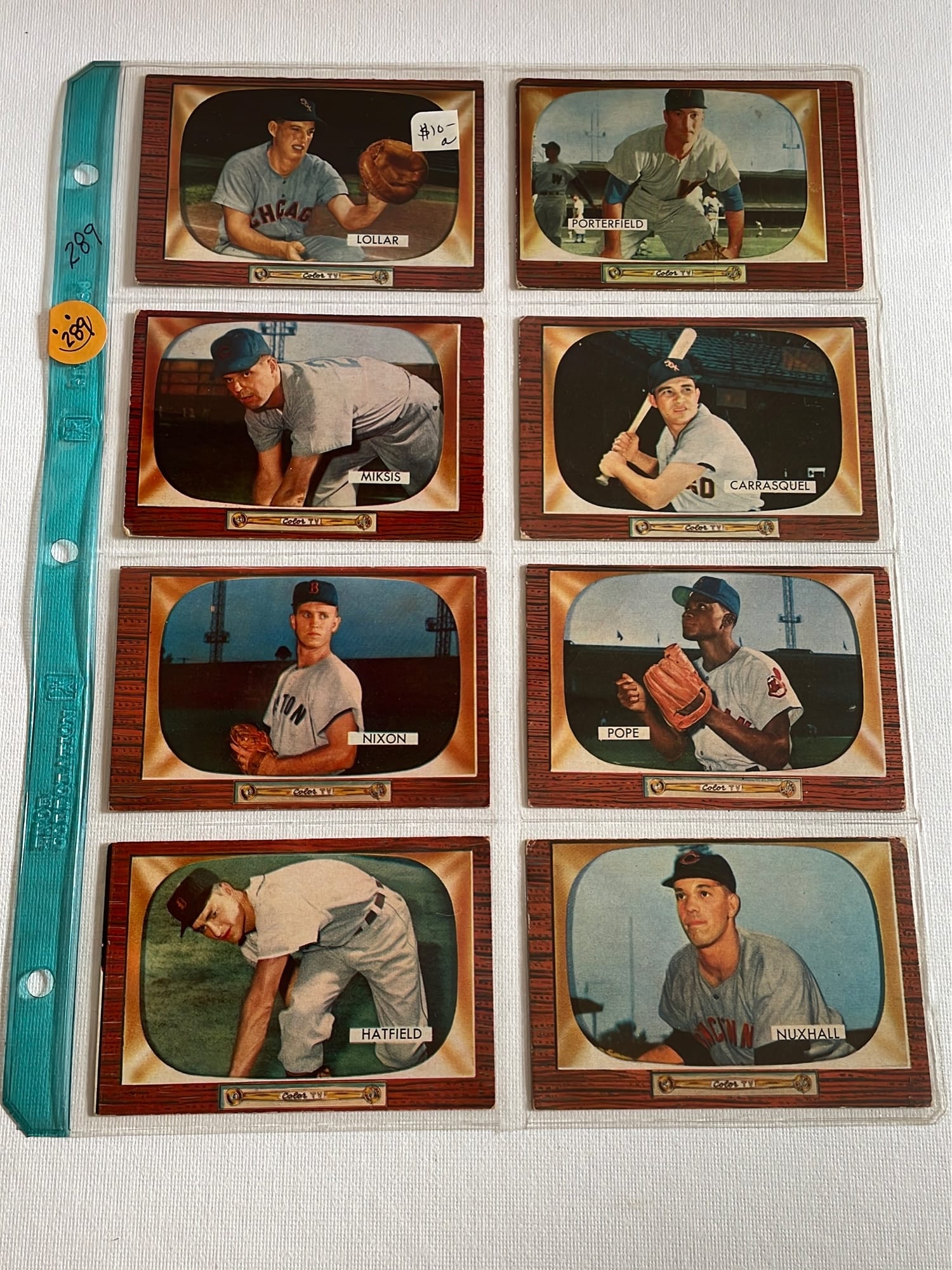 289 8 - 1955 Bowman “Color TV” Baseball Cards, Including: Lollar, Porterfield, Miksis, Carrasquel, Nixon, Pope, Hatfield, Nuxhall