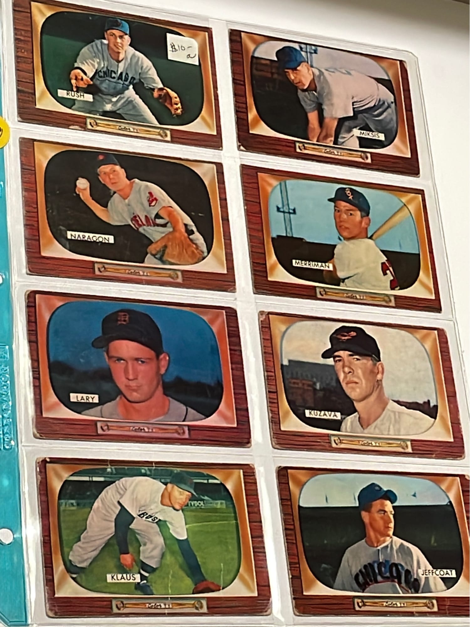 290 8 - 1955 Bowman “Color TV” Baseball Cards, Including: Rush, Miksis, Naragon, Merrimack, Lary, Kuzava, Klaus, Jeffcoat