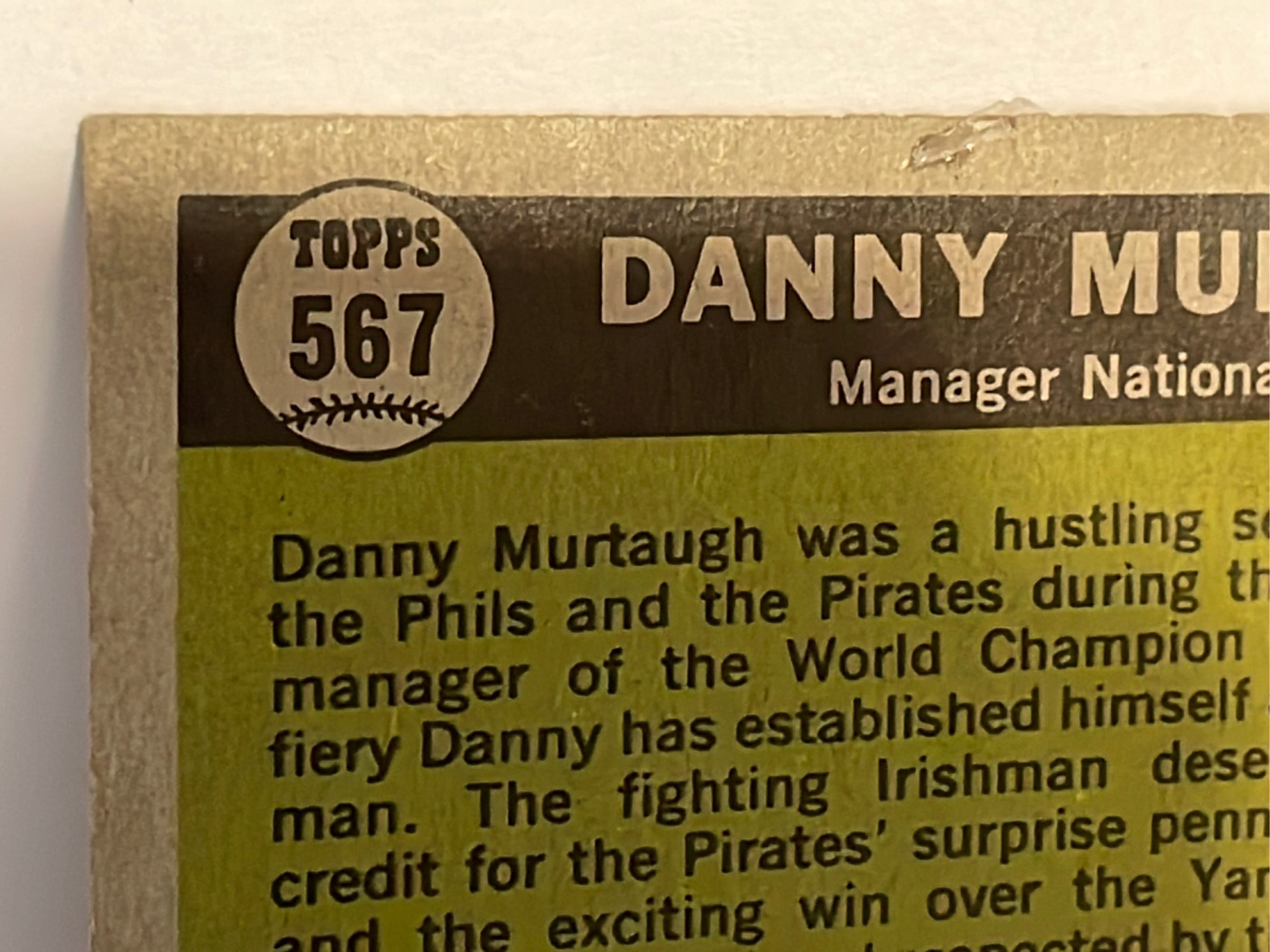 293 1961 Topps Baseball Card #567, DANNY MURTAUGH,-MGR NATIONAL LEAGUE