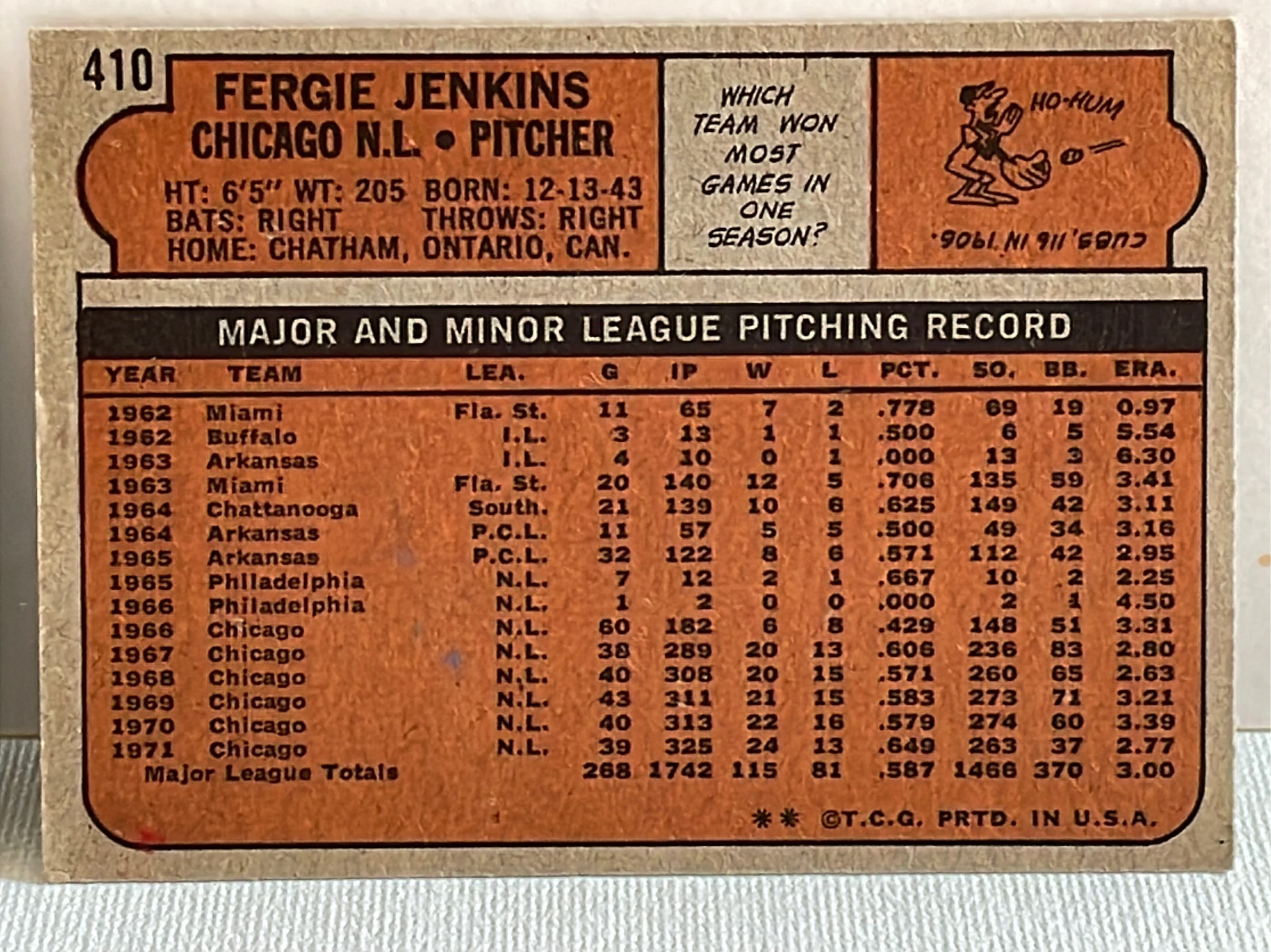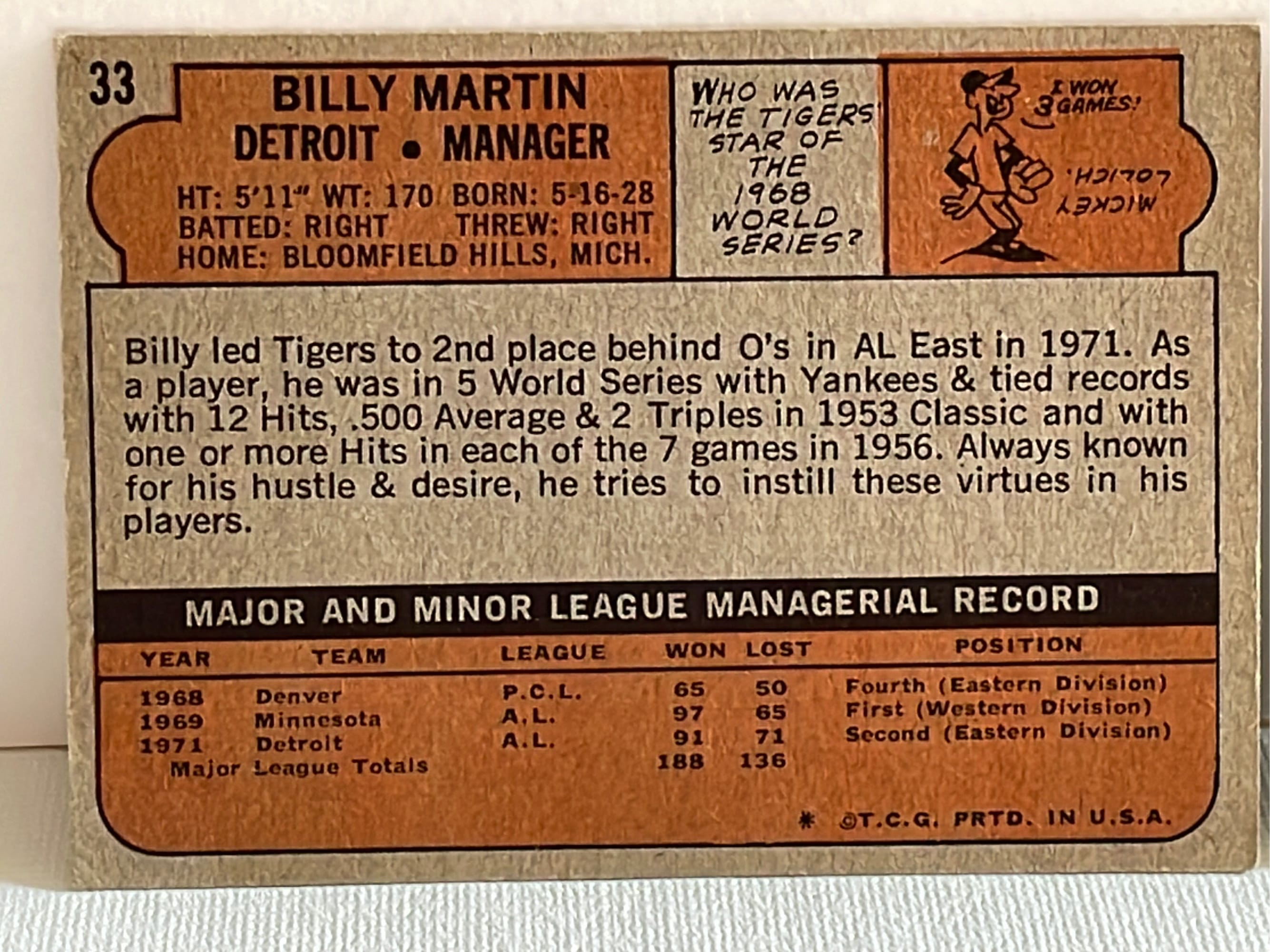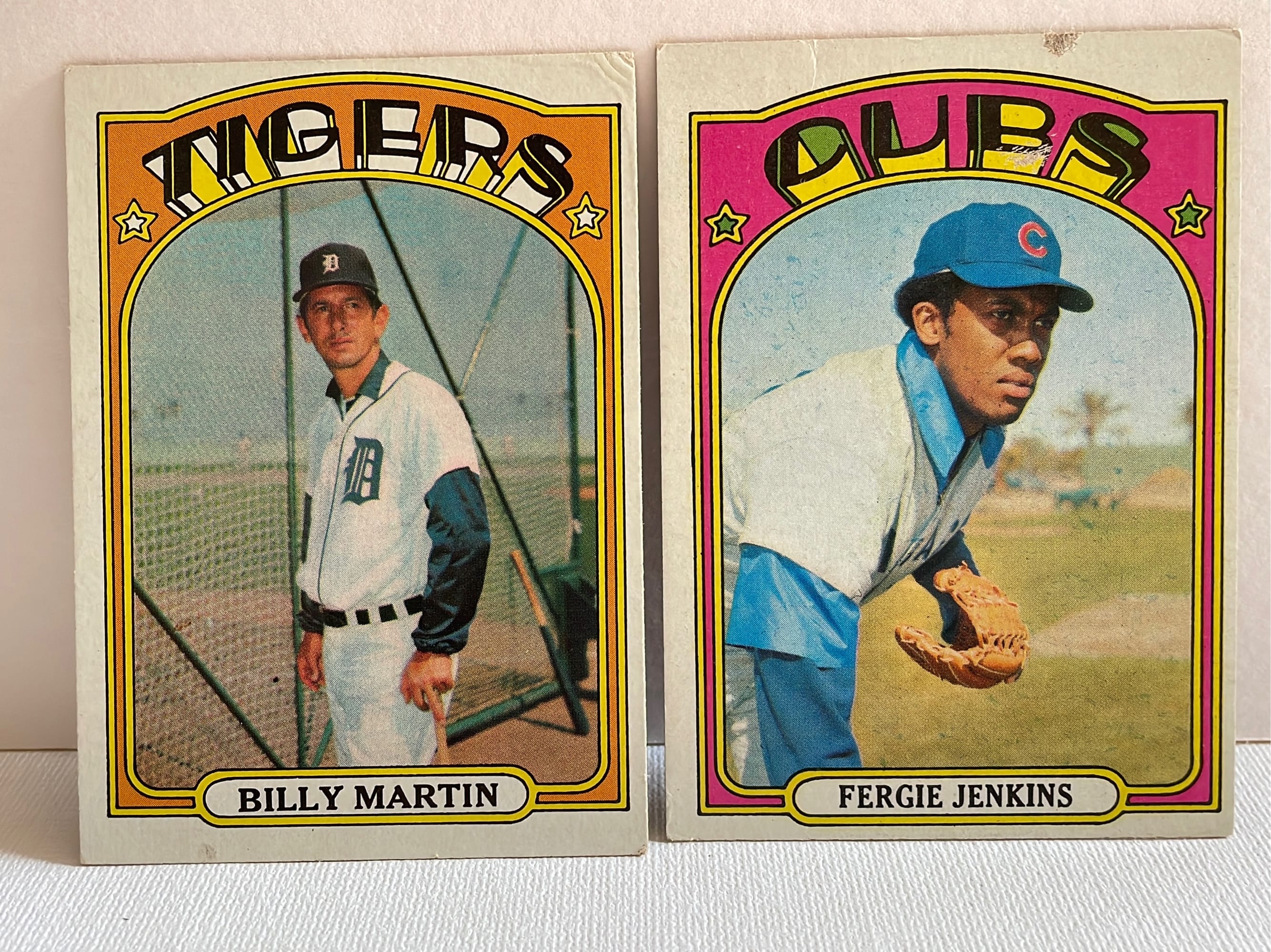 295 2 - 1972 Topps Baseball Cards: #33 Billy Martin, #410 Fergie Jenkins