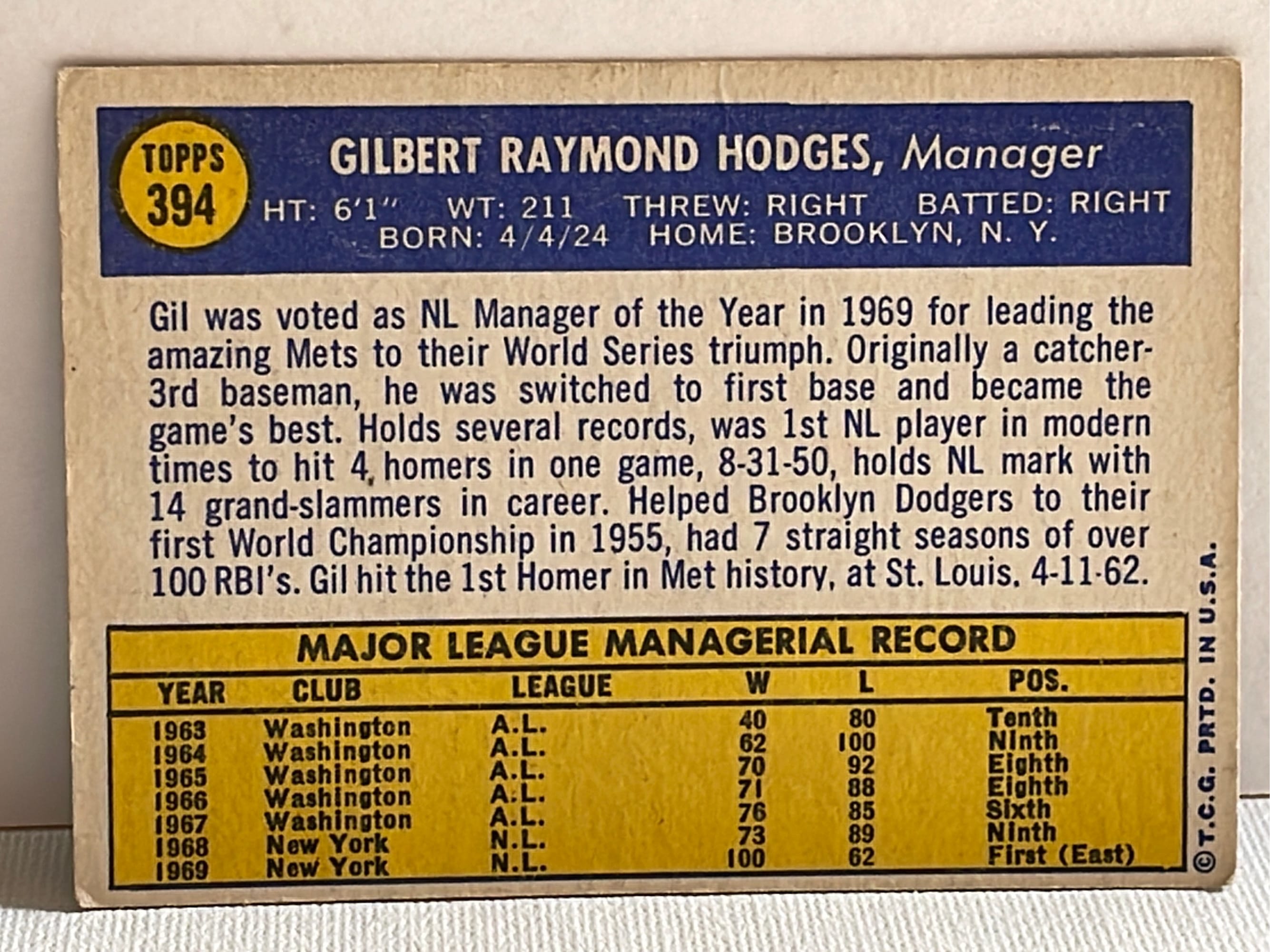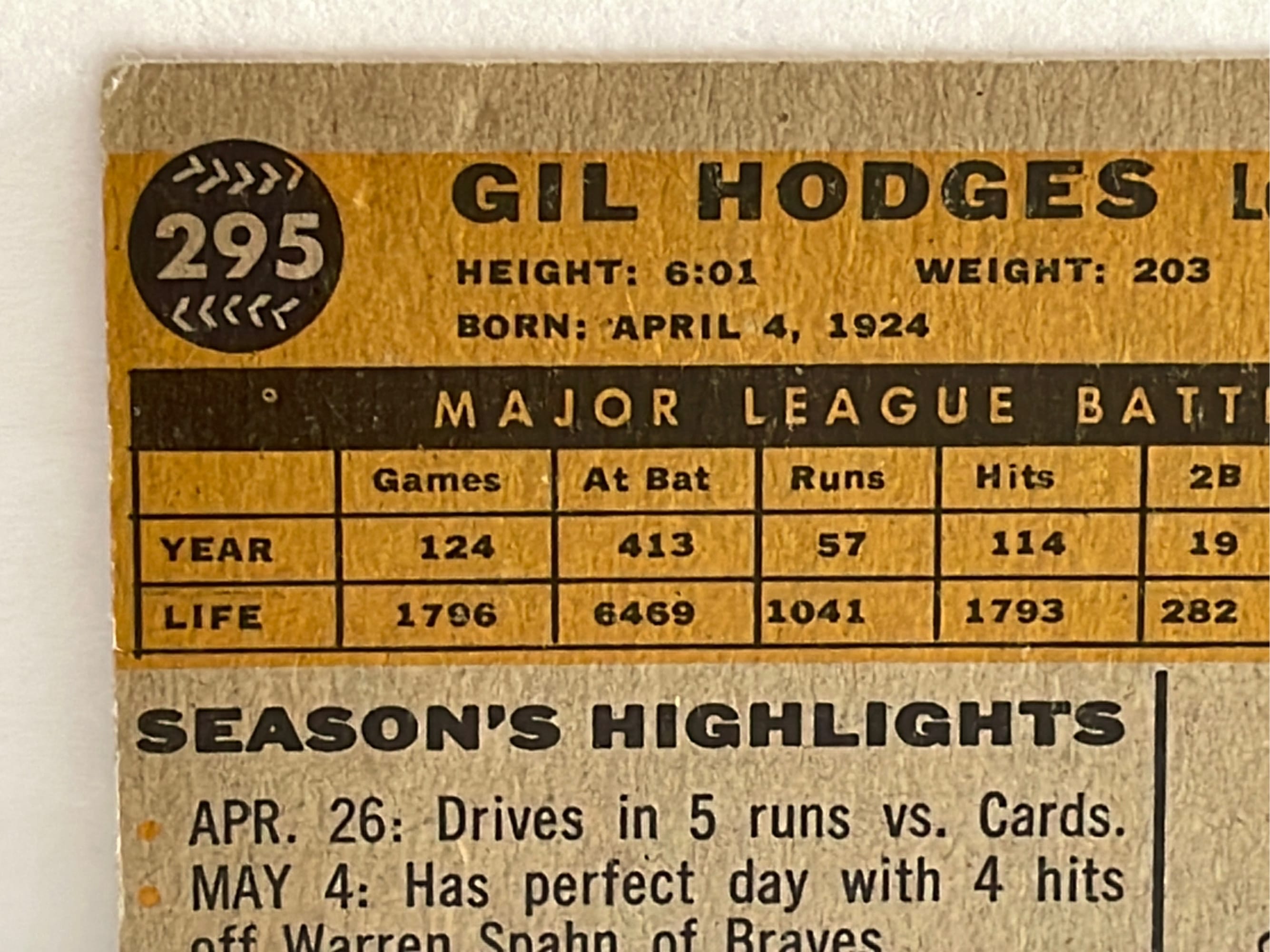 296 1960 TOPPS Baseball Card: #295 Gil Hodges