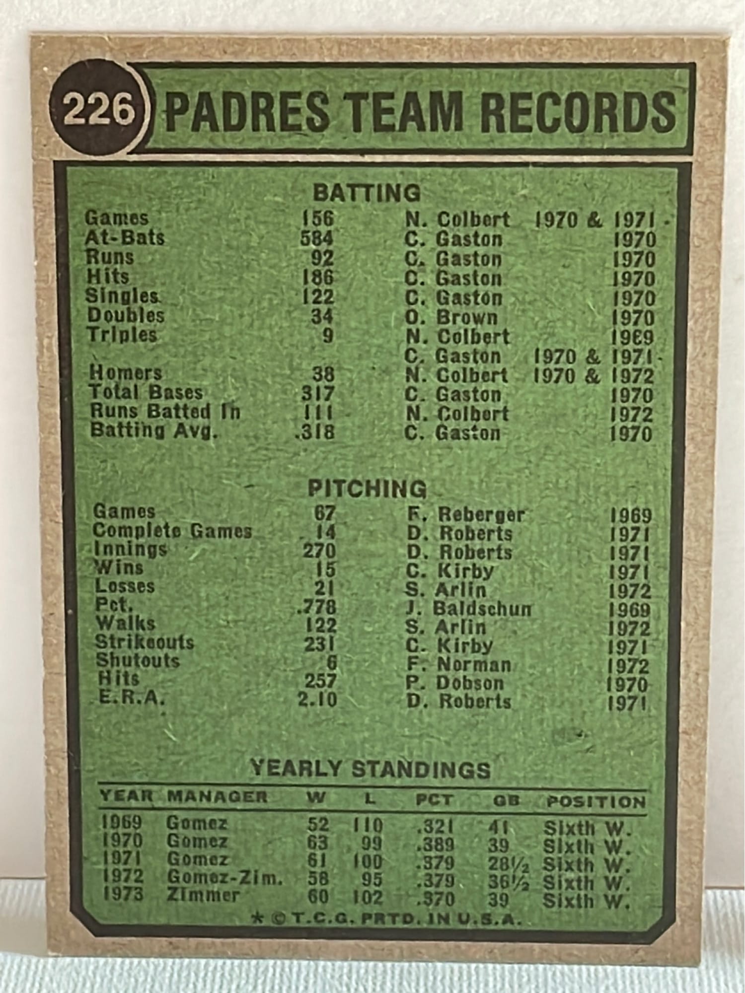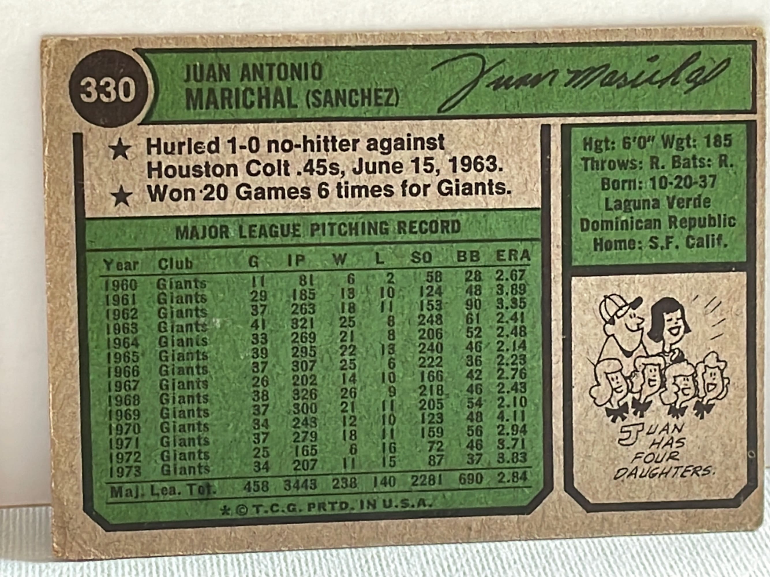 298 2 - 1974 TOPPS Baseball Cards: #226 Padres Team Washington “Nat’l Lea.,” and #330 Juan Antonio Marichal (Sanchez)