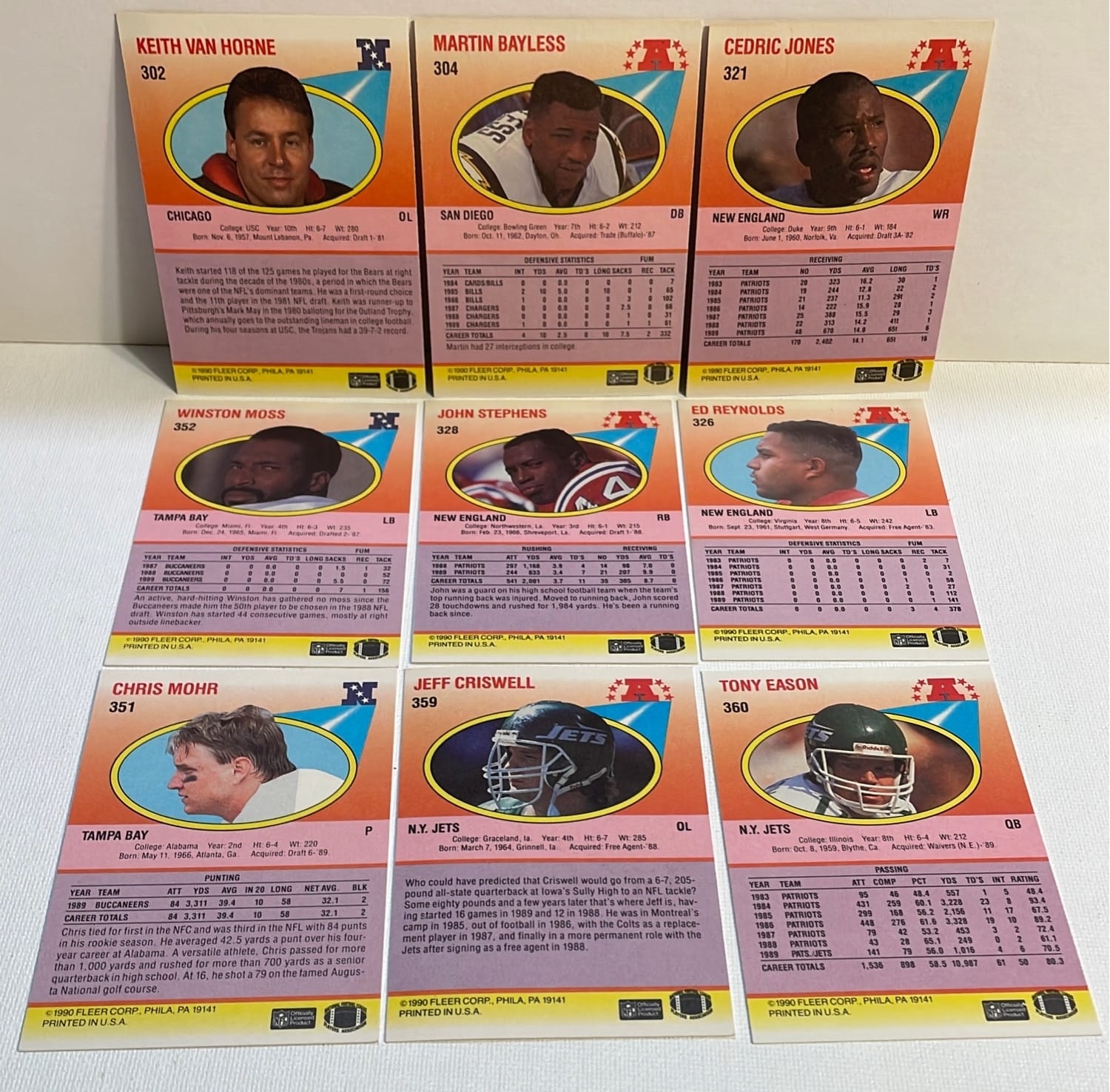 300 9 - 1990 Fleer football cards: Van Horne, Baylee’s, Jones, Moss, Stephens, Reynolds, Mohr, Criswell, Easin