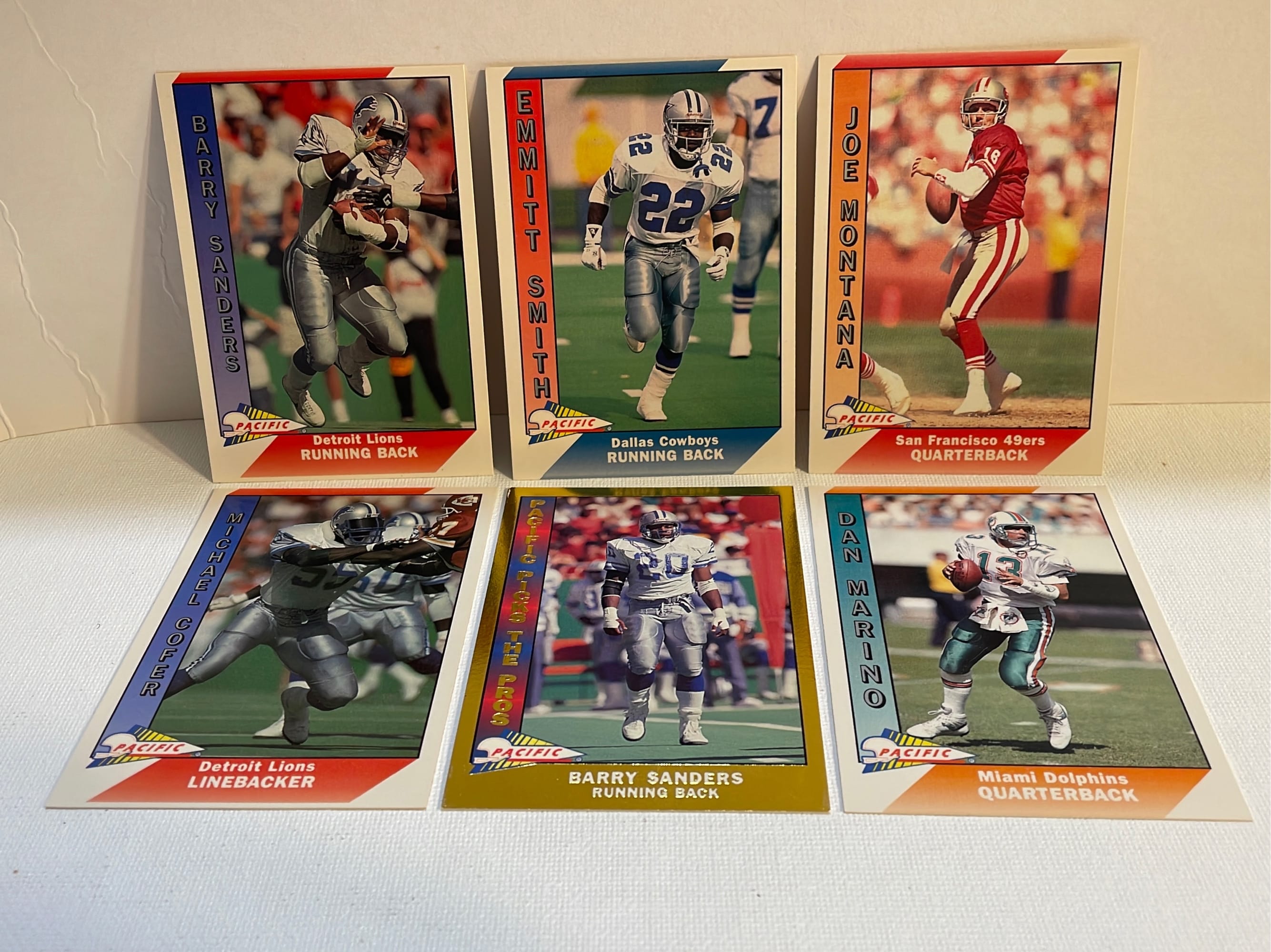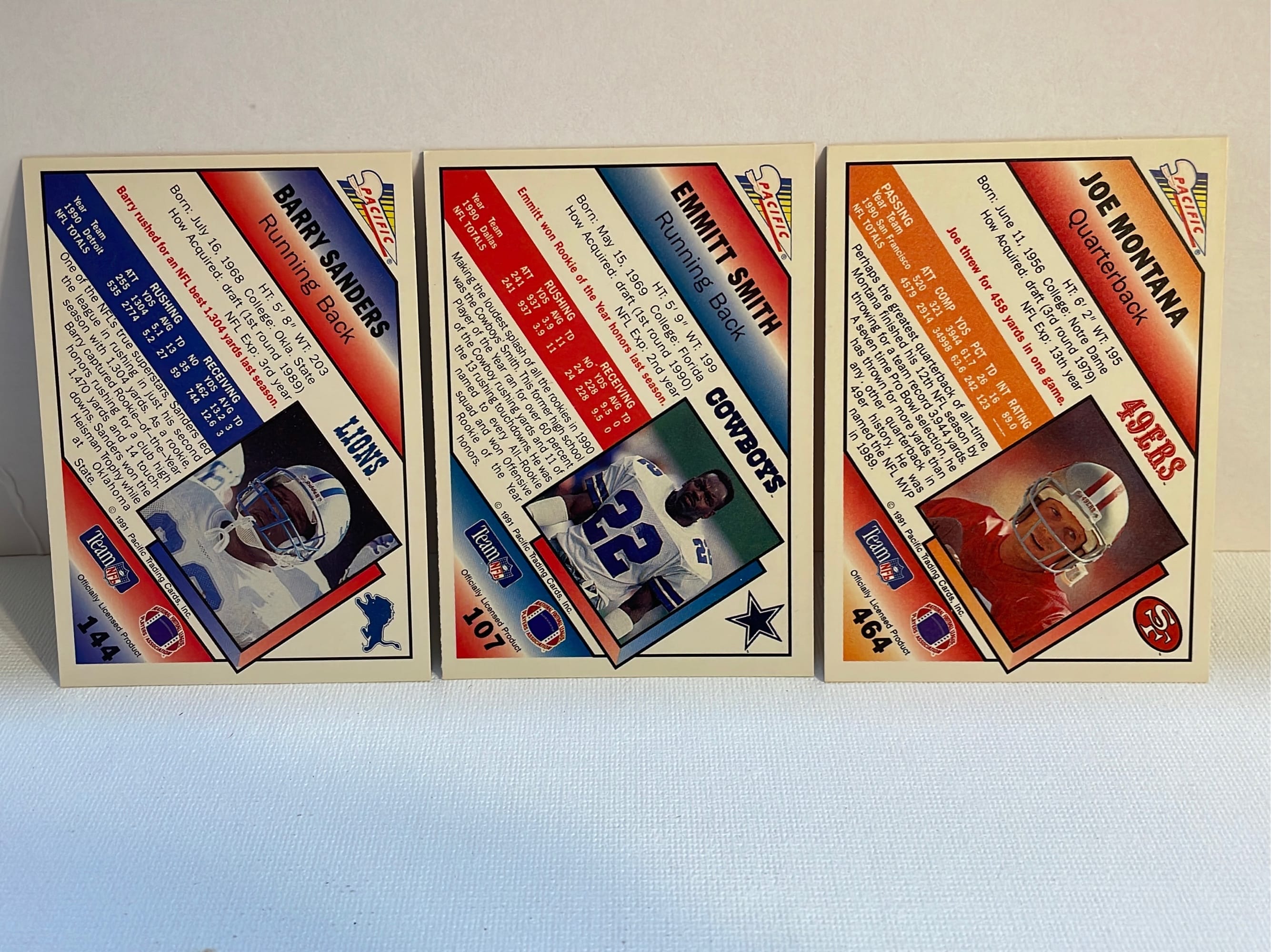 301 5 - 1991 Pacific Football Cards: Sanders #144 and Pacific Picks the Pros #11 , Smith, Montana, Sanders, Marino