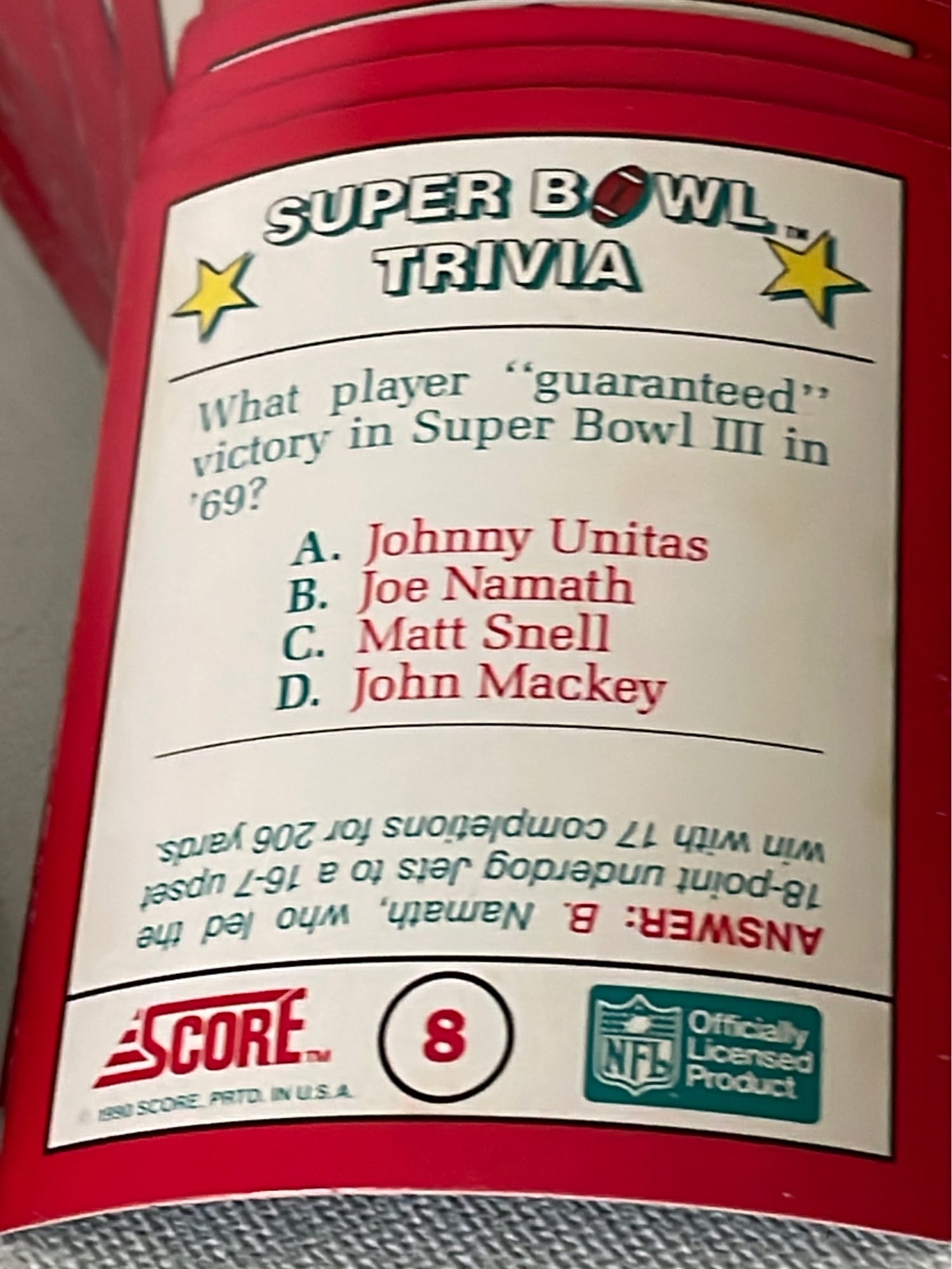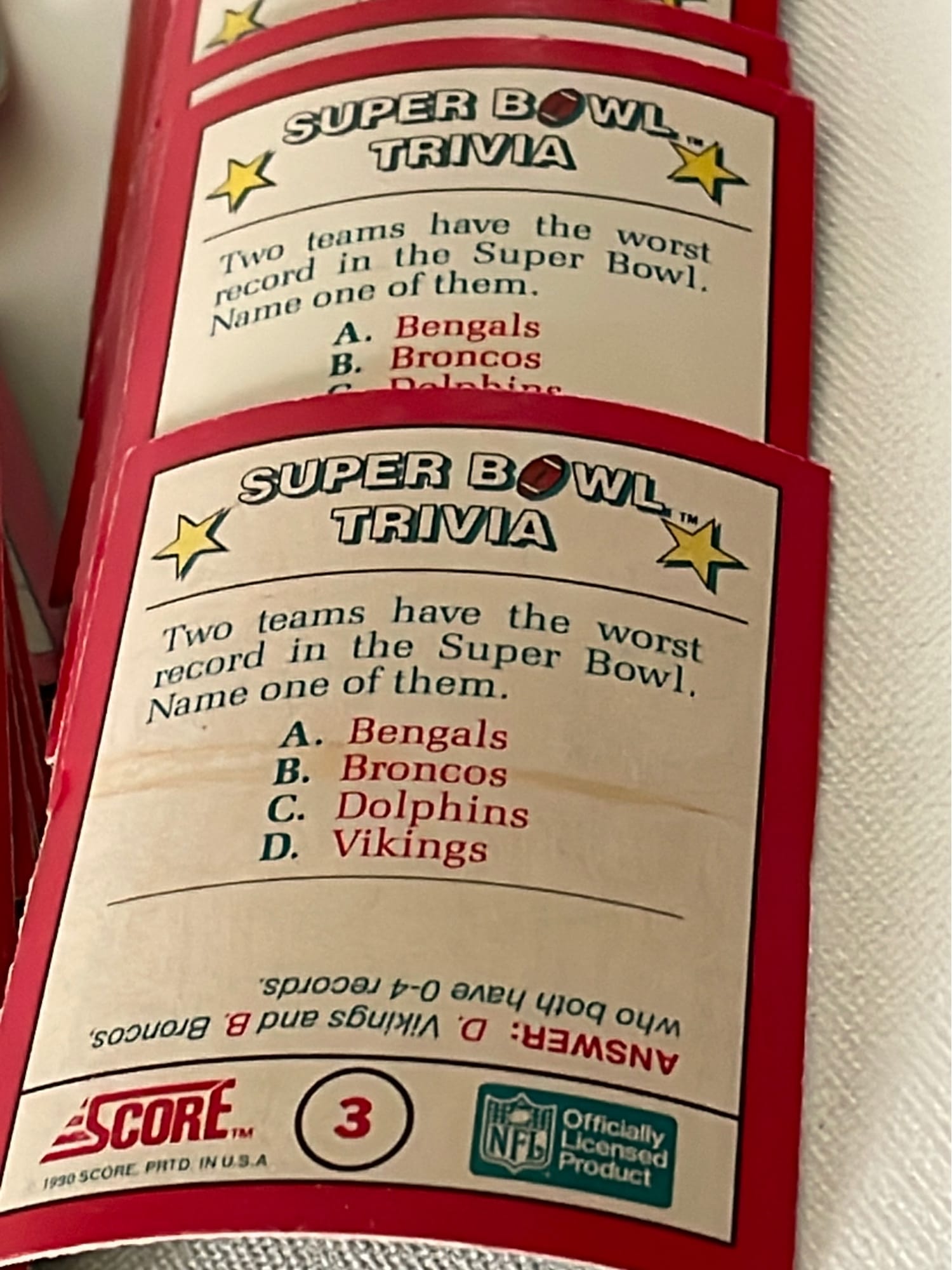 303 1990 SCORE Super Bowl Trivia 3-D NFL Mini-Cards (some repeats)