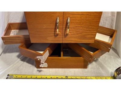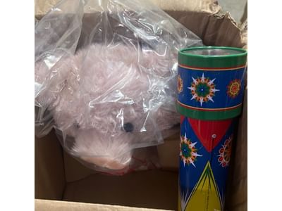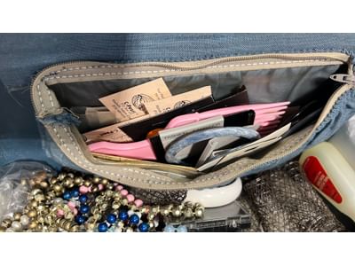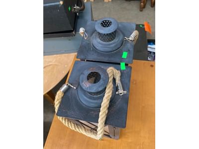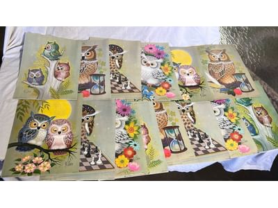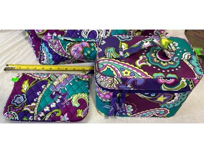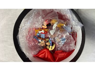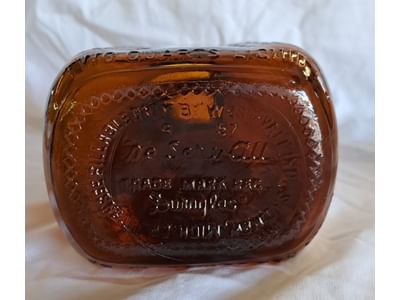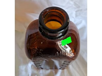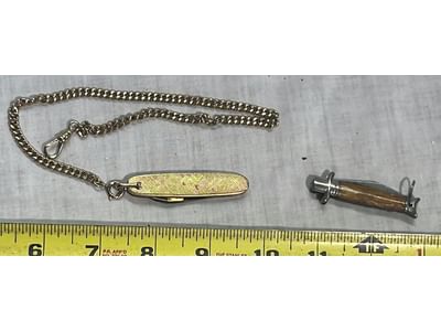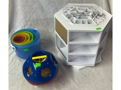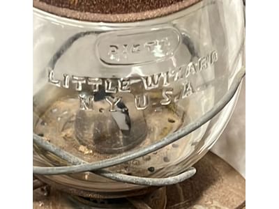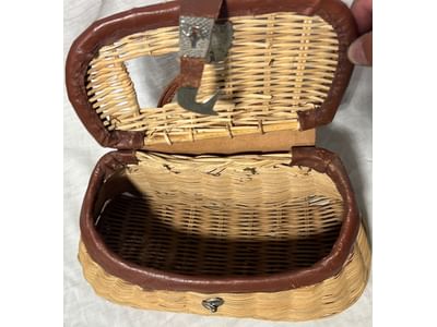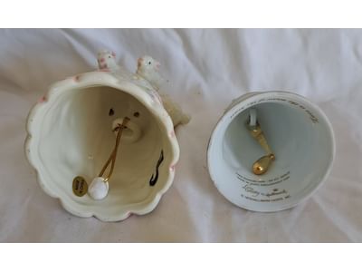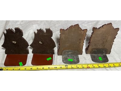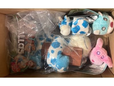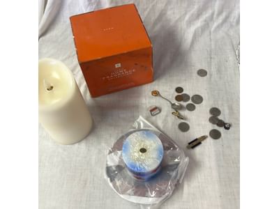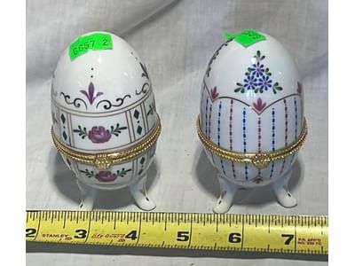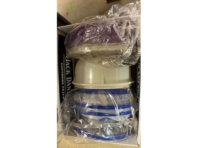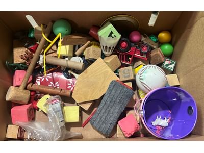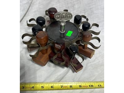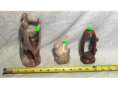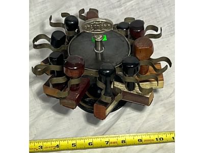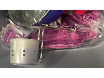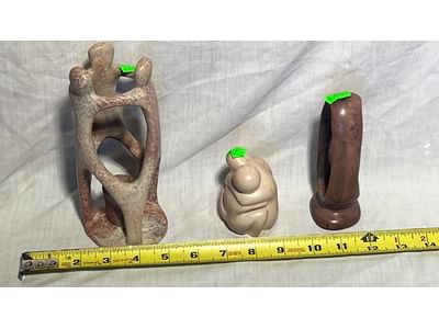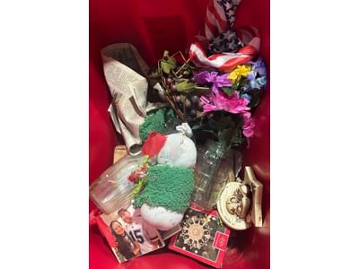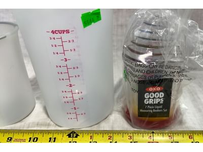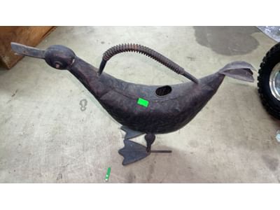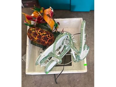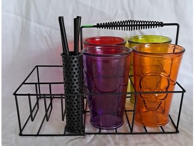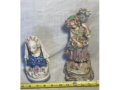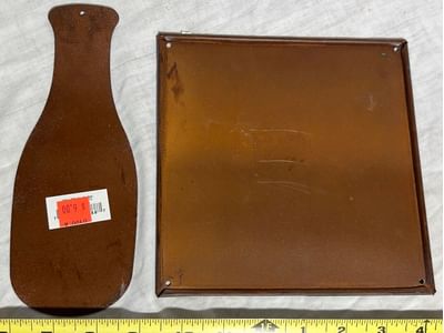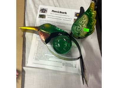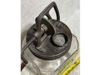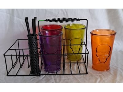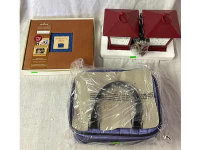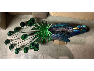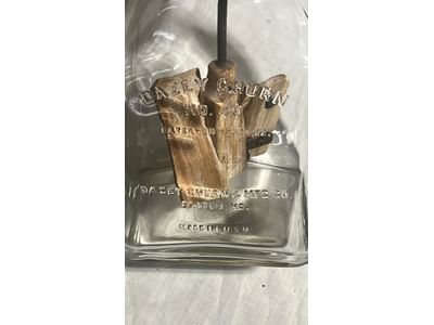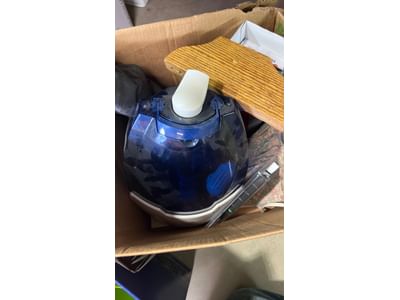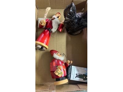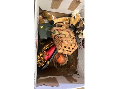 6715 Vintage Blue Cobalt Bottle 6.5” • Purple Double Elephant Head Carnival Glass Toothpick Holder 3.5” • Miniature Mug & Cobalt Blue Miniature Cups • Chicken Design Trivet 7.5” • Ice Blue Glass Basket 4”