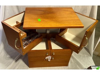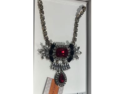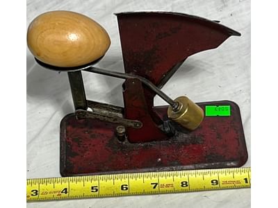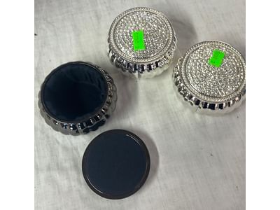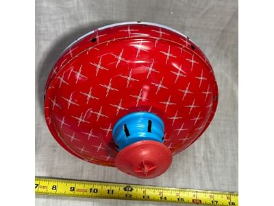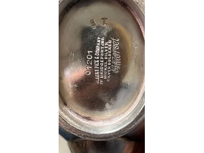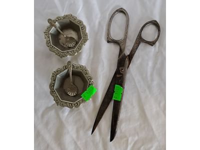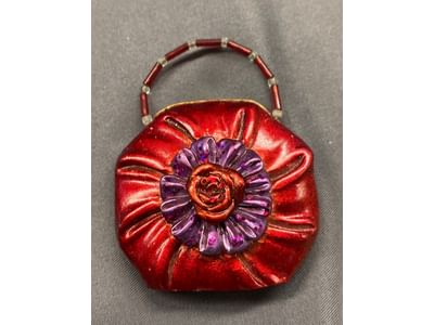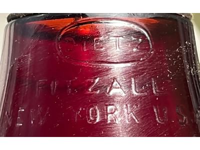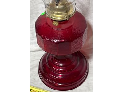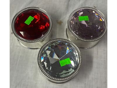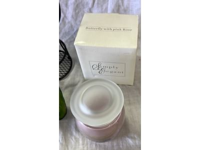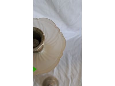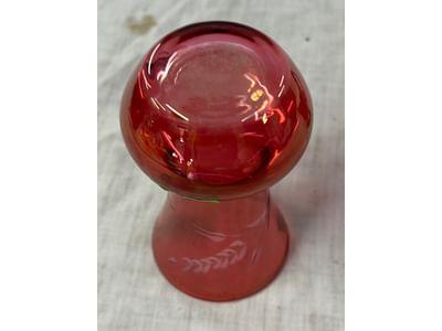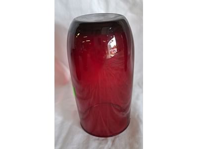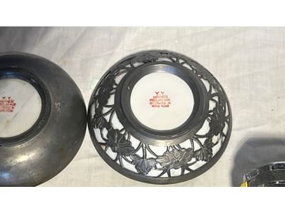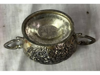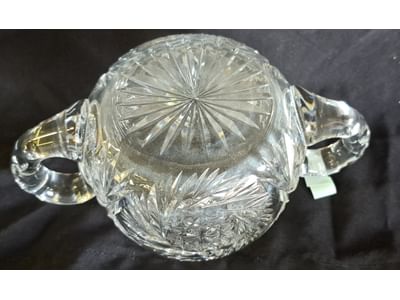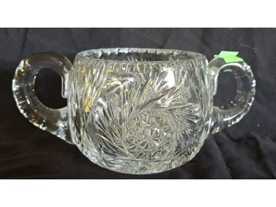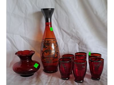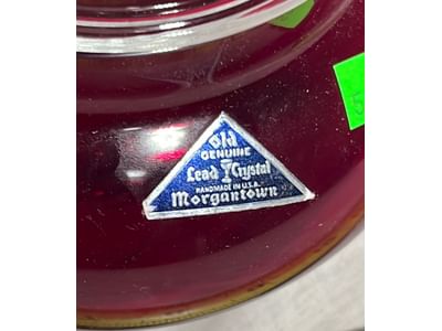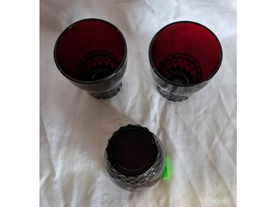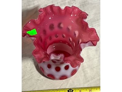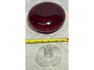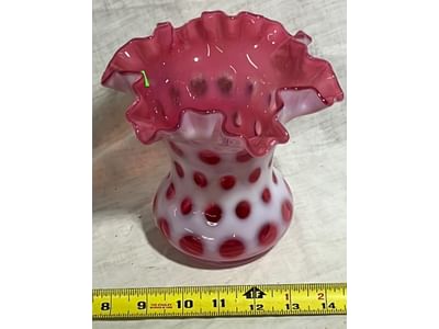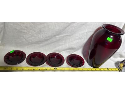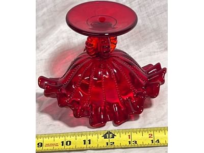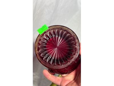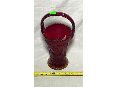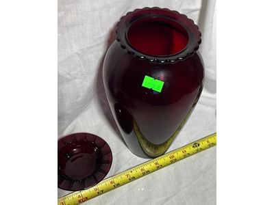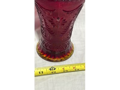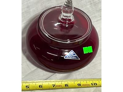 6752 Metal sugar bowl 4”, cranberry glass vase 4”