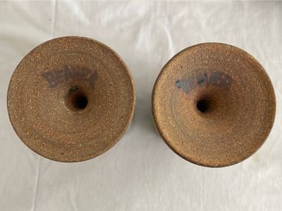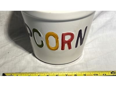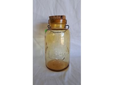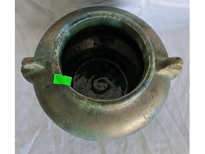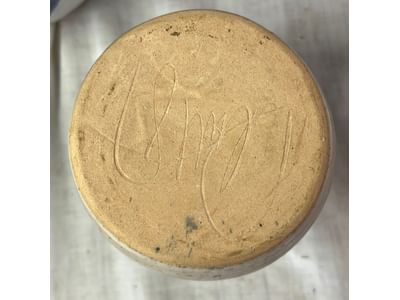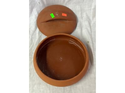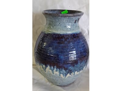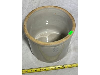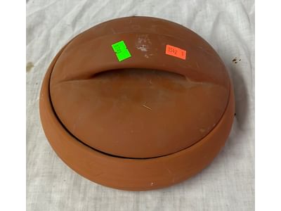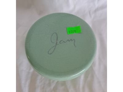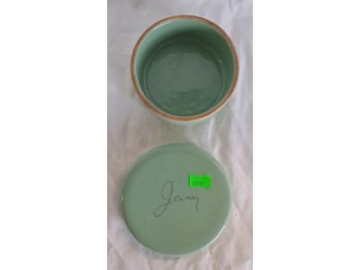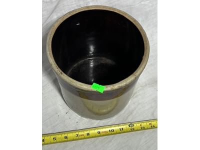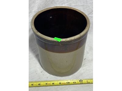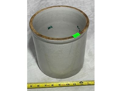 6746 Ginger jar w/lid, pottery crock 6”, weed vase