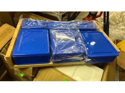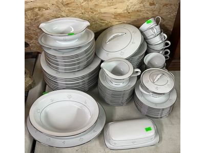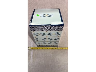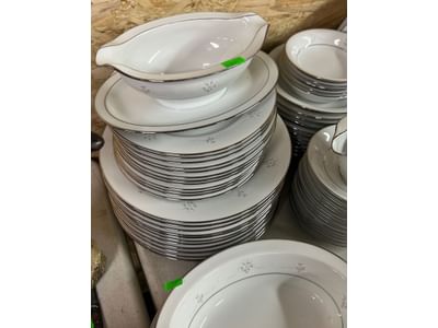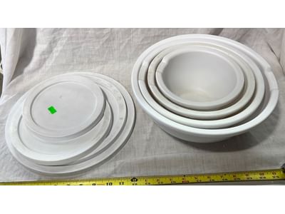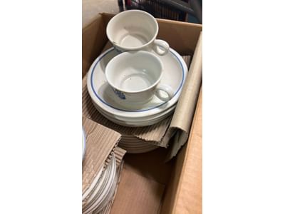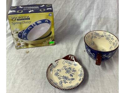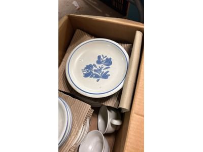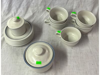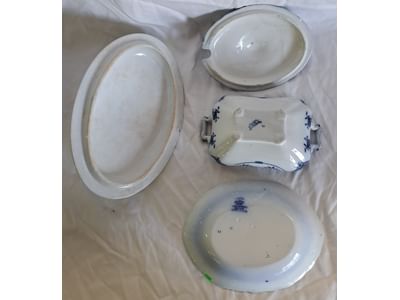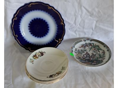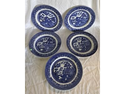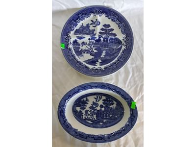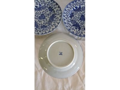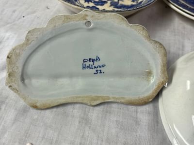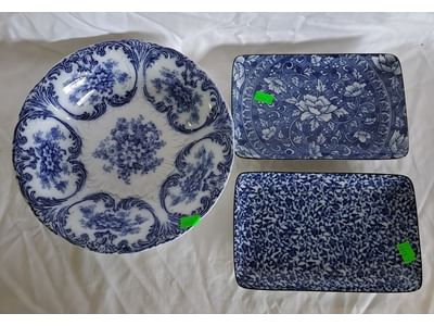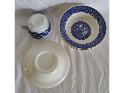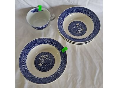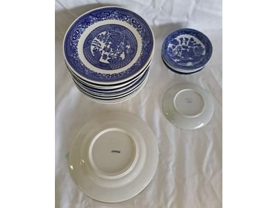 6751 Blue & white plates, bowls, dish lid, mini rack