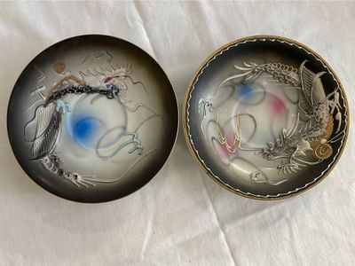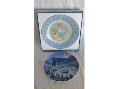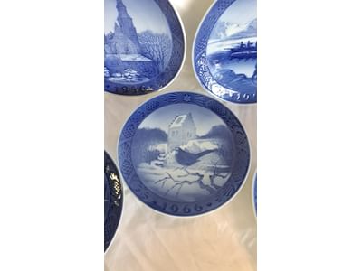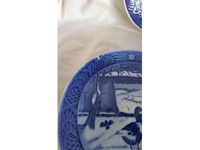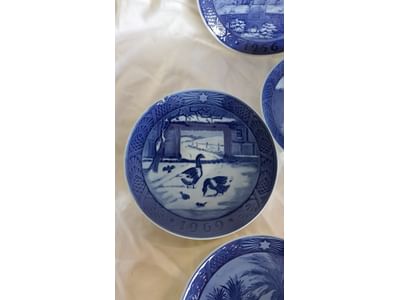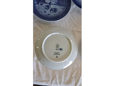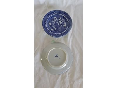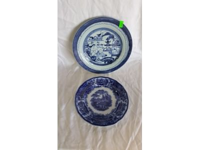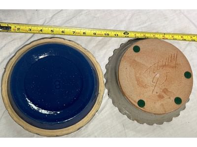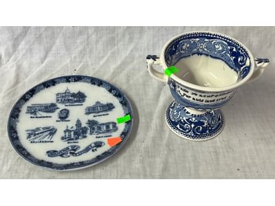 6755 Blue & white compote dish 5”, souvenir plate 7.5”