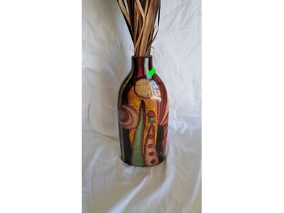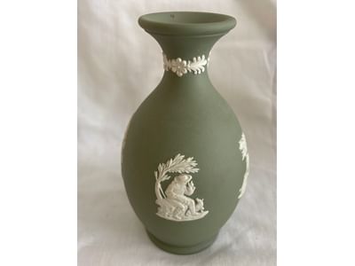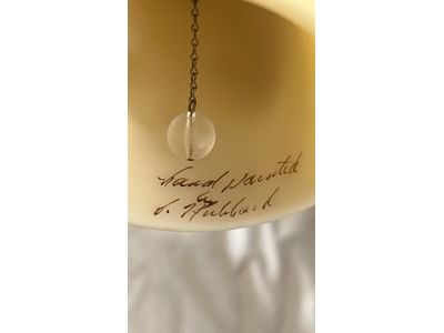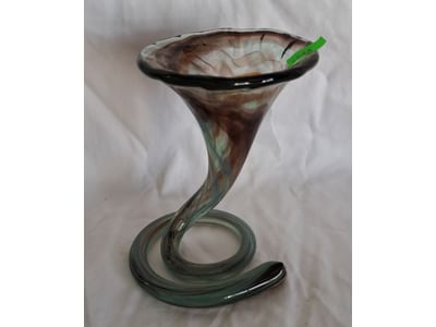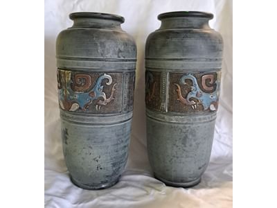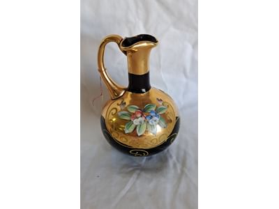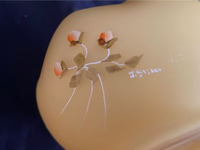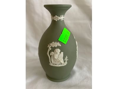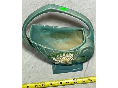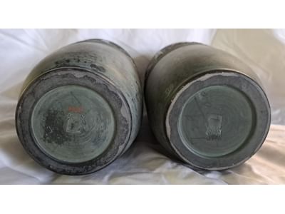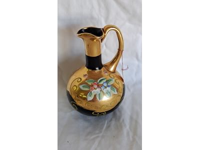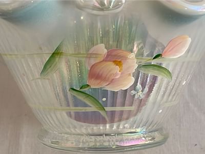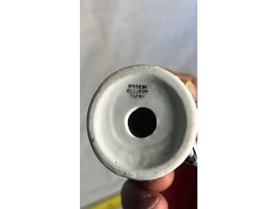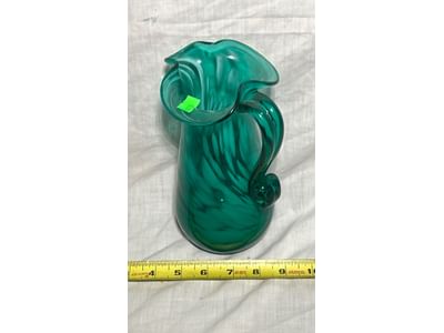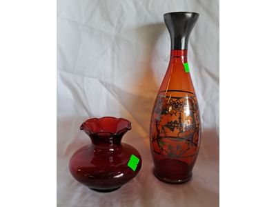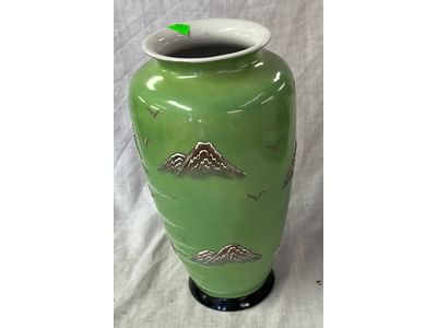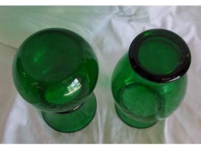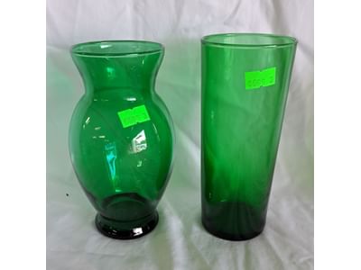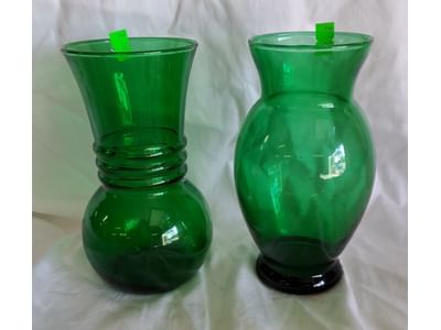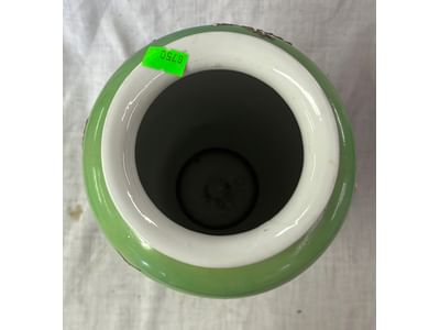 6743 Royal Haeger vase 8”, painted green glass vase 6.5”