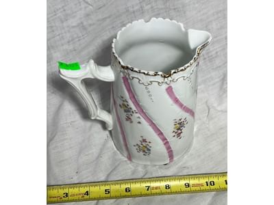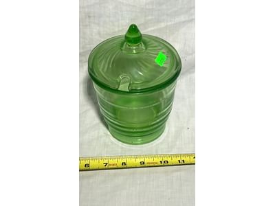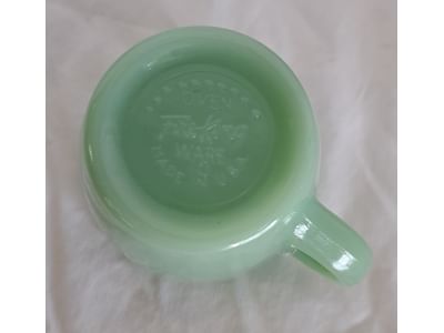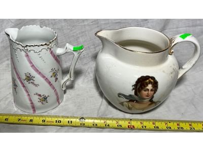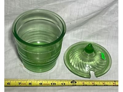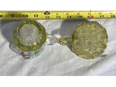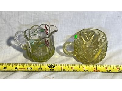 6696 Vintage Daisy Button Vaseline Uranium Punch Cup 2.5” • Antique Hand Painted Creamer 3.25”