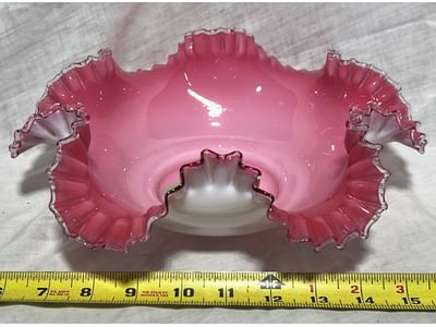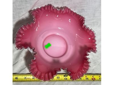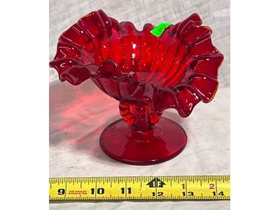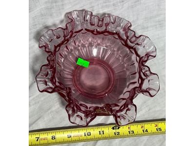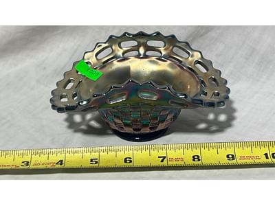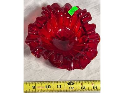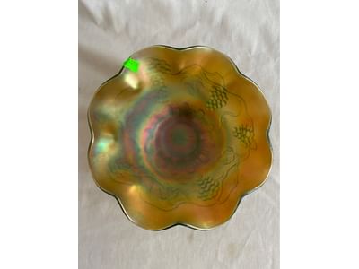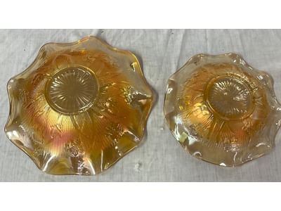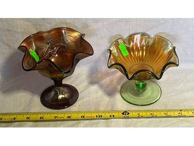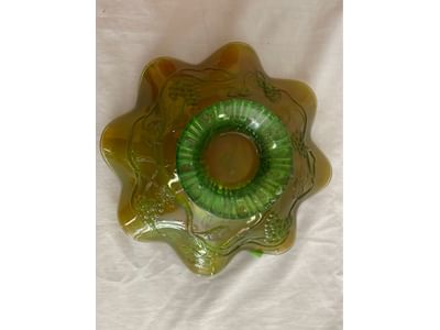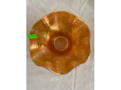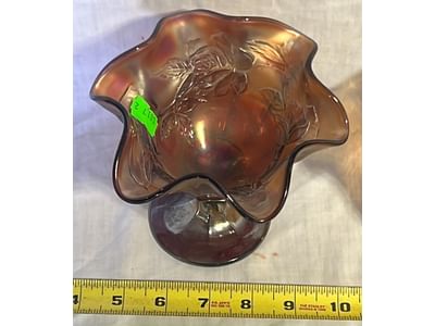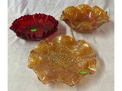 6742 Imperial Glass Ruby Ruffled Bowl 8.5”, imperial marigold carnival glass bowl 9”, Imperial Marigold Carnival Glass Grapes Ruffled Edge Bow 8.5”