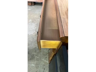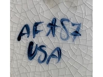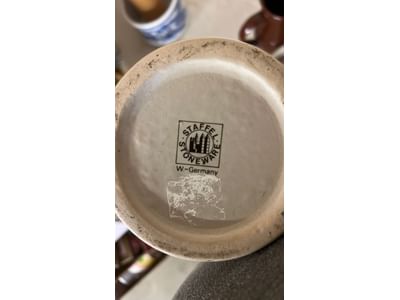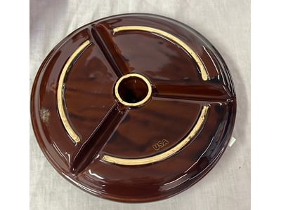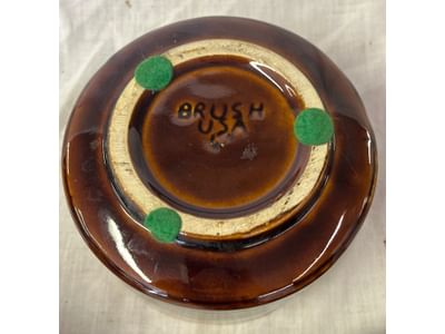 6780 Brush USA drip glaze bowl 6.5”x3”, sugar bowl w/lid, divided plate 11”, mug-chip on bottom 5”