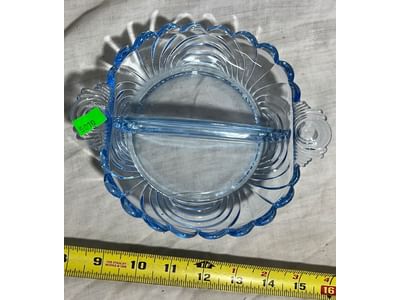 6698 Serving Bowl Indiana Glass Tiara Duchess Footed 11” • Blue celeste Iridescent Art Glass Plate in Stretch Form with a Curved Inner Rim 11”