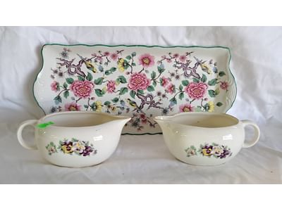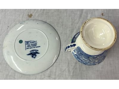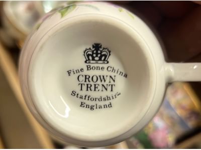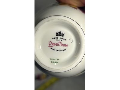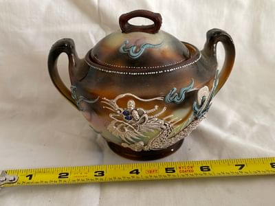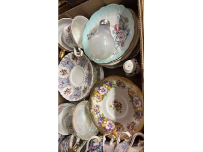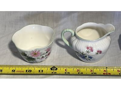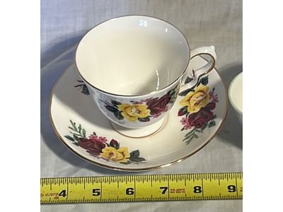 6697 Gibsons Burslem Decorative Sugar Bowl with Lid 3” & Teacup assortment (see photos)