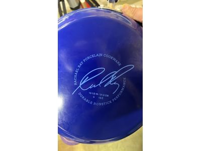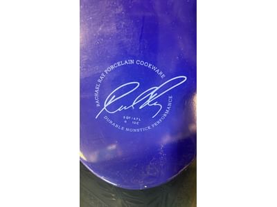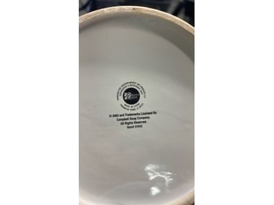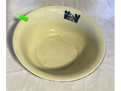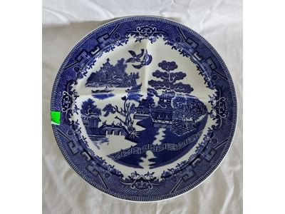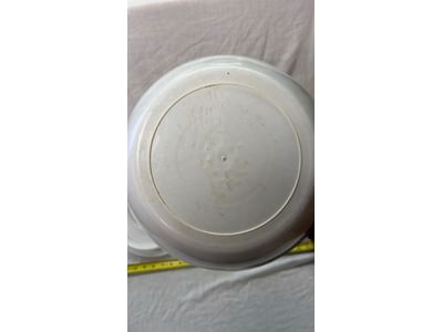 6749 R. R. P. Roseville Ohio pottery bowl blue sponge pattern 12”