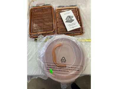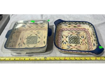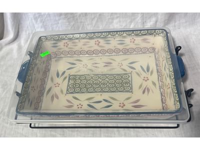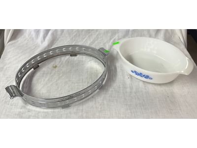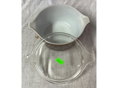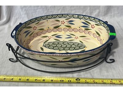 6739 Anchor Hocking Fire King dish 1 1/2 qt, dish cradle 15”