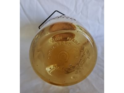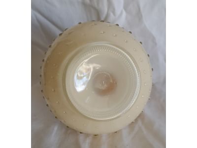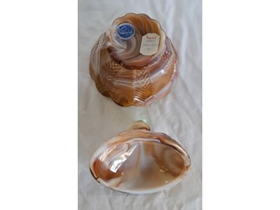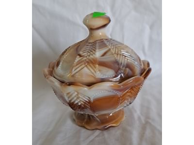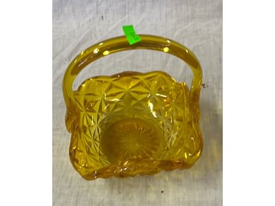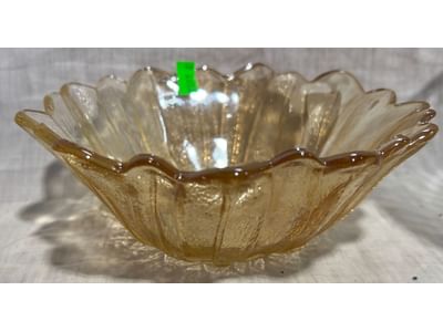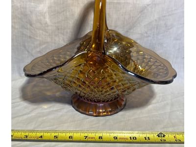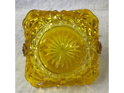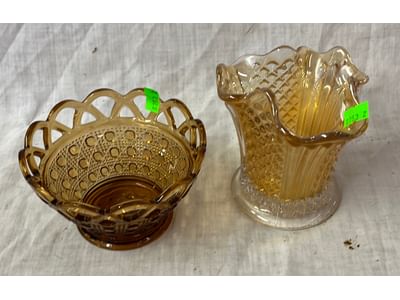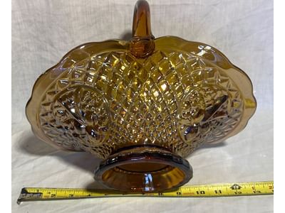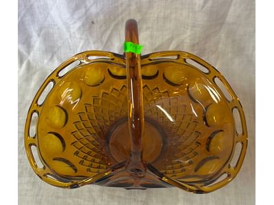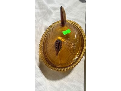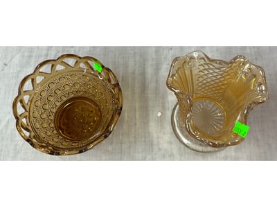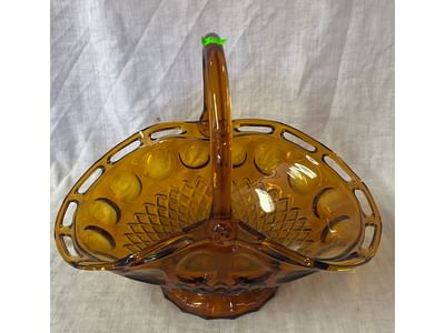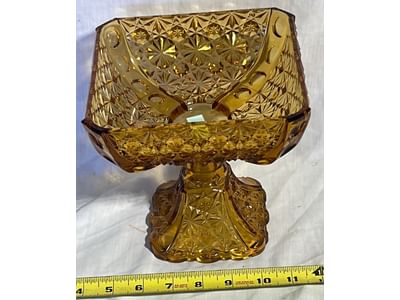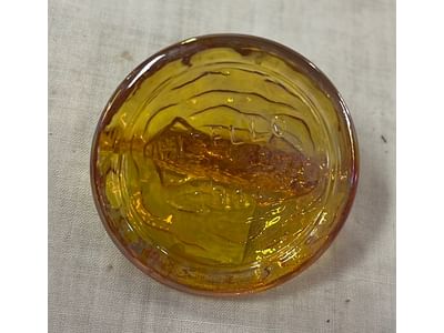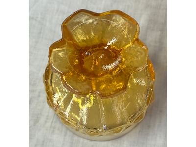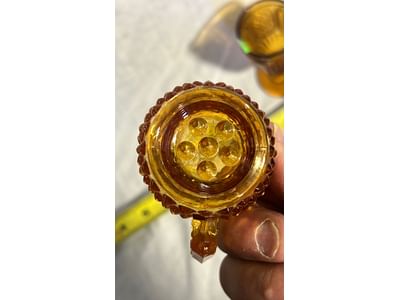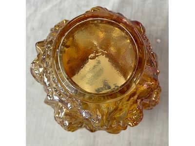 6753 Amber Glass Bowl, Raised Buttons, Lattice Top 5”, marigold glass vase 5”