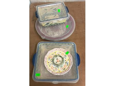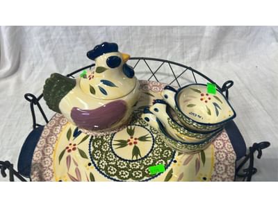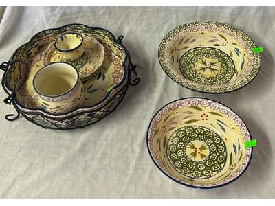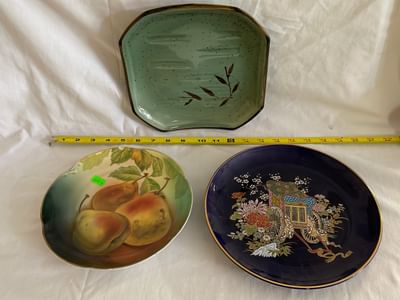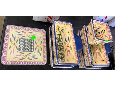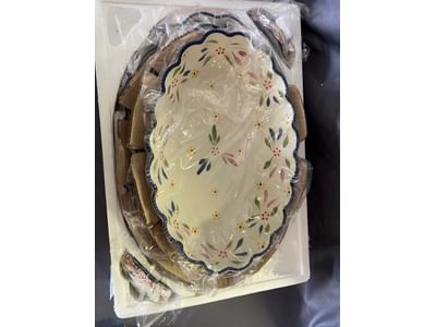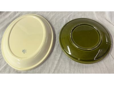 6769 Kitchen Kraft oval plays 13”, green ceramic plates 10”