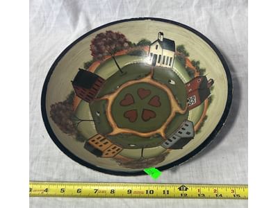 6766 USA Brown Stoneware Fruit Motif Fruit Decor Bowl 9”, Watt Oven Ware Pottery mixing bowl 9”