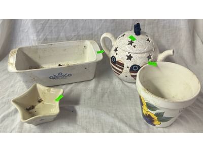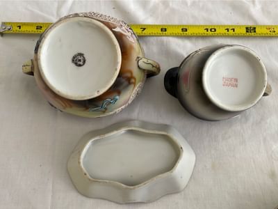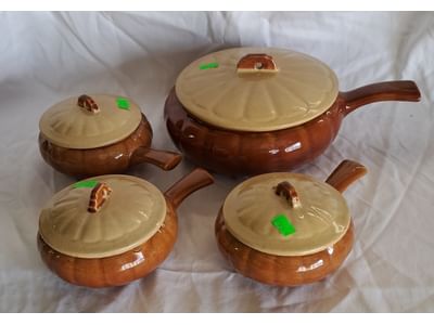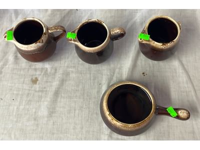 6781 McCoy USA creamers (one chipped), sugar (handle broke off), soup bowl