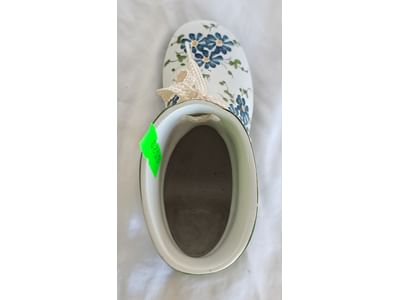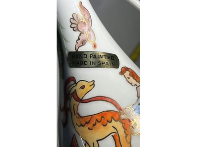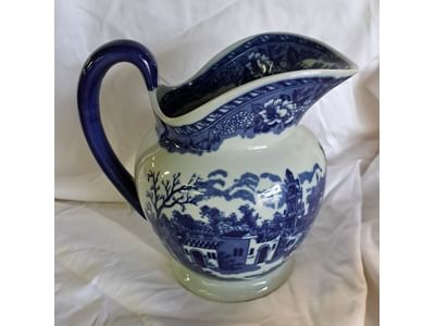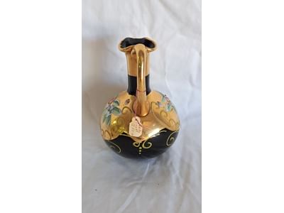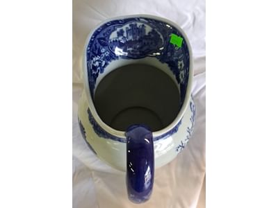 6774 Ceramic Pitcher Vase Made Hand Painted Portugal Blue Floral Design 7”, Portugal water pitcher fruit pattern 8”