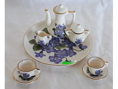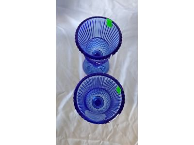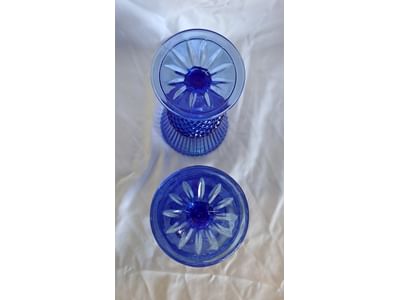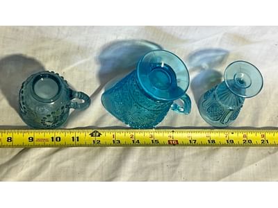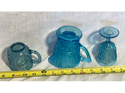 6710 Indiana Glass Miniature Pitcher 4” • Miniature Blue Goblet 3.75” • Miniature Cup 2.5”