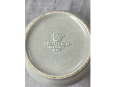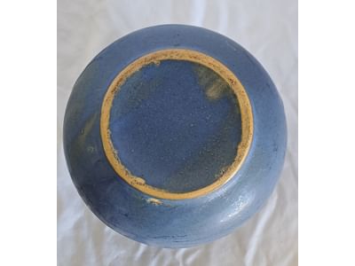 6737 R. R. P. Roseville Ohio pottery bowl blue sponge pattern 4.5”x6”