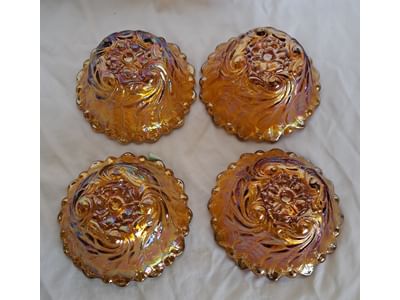 6768 4 - Fire king ware peach luster beehive soup bowls
