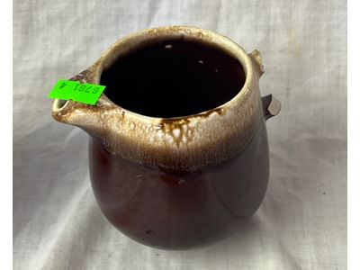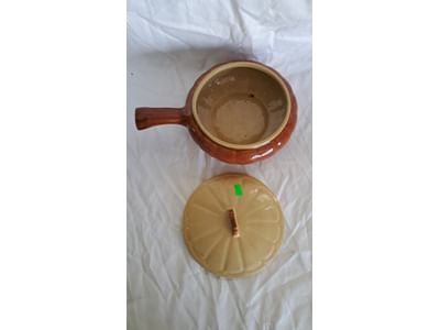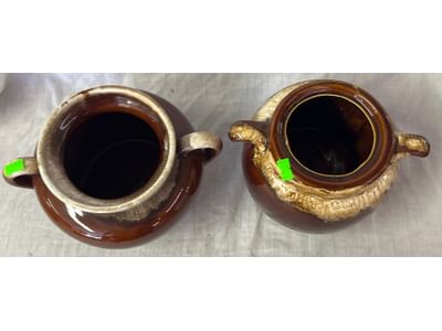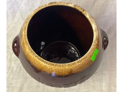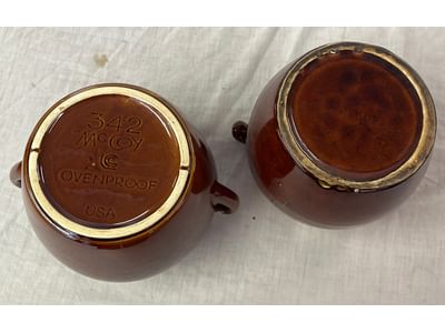 6777 McCoy USA ovenproof brown glaze handled bean pot 6”x9”, drip glaze bean pot 6.5”x 8.5”