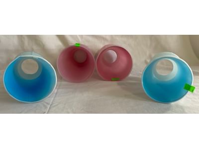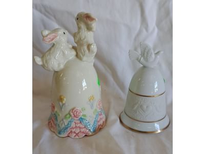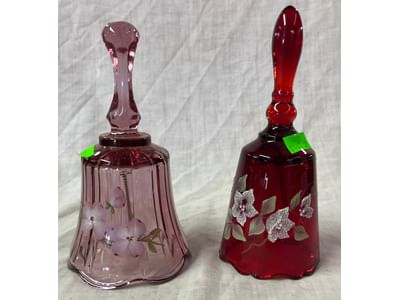 6745 2 - Unmarked Fenton glass bells ruby red, pink 6”