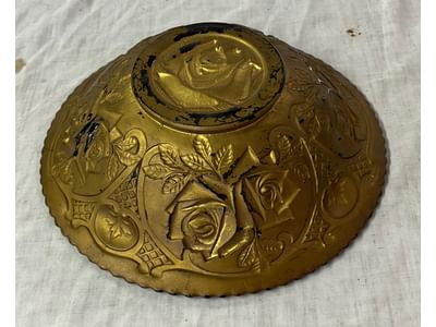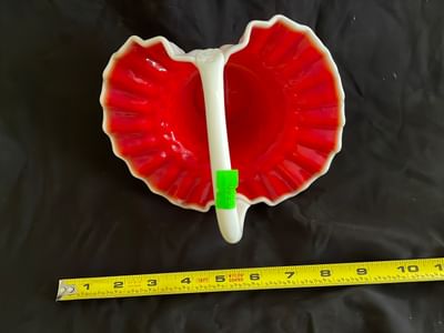 6764 Goofus Glass Red Roses Gold Bowl Scallop Edge 3" x 9"