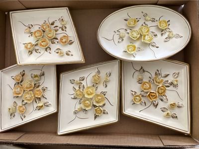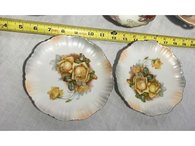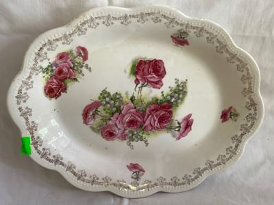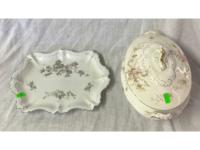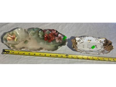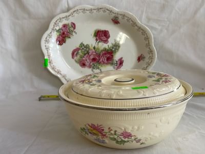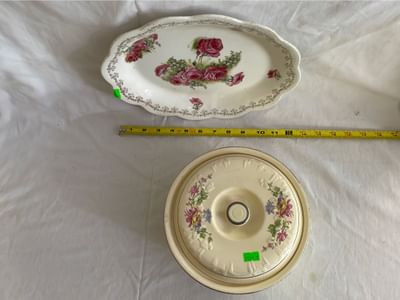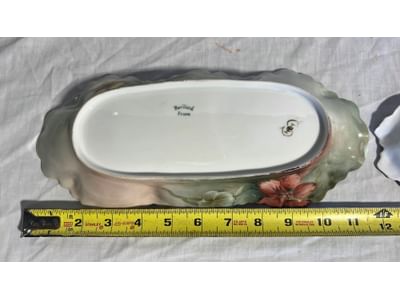 6770 Belle China porcelain oval floral serving dish 11”(lid is chipped), Austria floral plate 11”