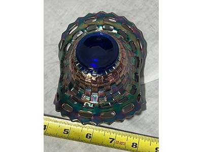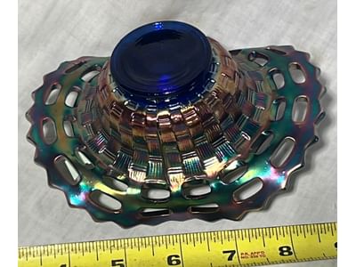 6723 Carnival Blue Iredescent Fruit Bowl 12.25”
