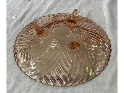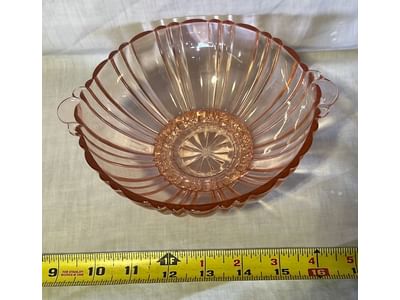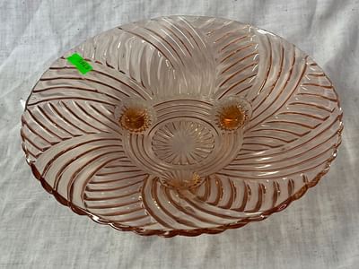 6765 Pink Depression Glass 3 footed Bowl 10"