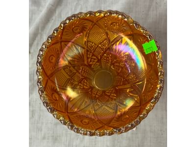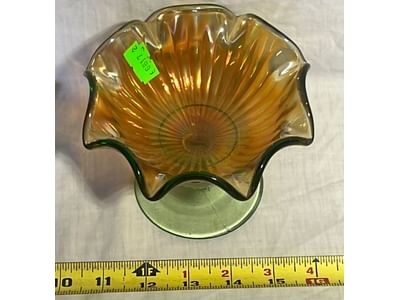 6757 Imperial Marigold Carnival Glass Punch Bowl Stand / Vase 5.5”
