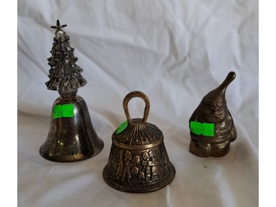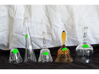 6688 5-Bell assortment including Fenton Amber hobnail 5 3/4" tall