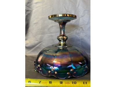 6712 Blue Carnival Glass Pedestal Candy Dish Iridescent Compote Fruit Bowl Vtg 8.5"