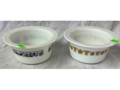 6738 2 - Pyrex butter tubs butterfly gold, old town blue